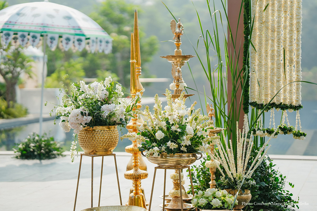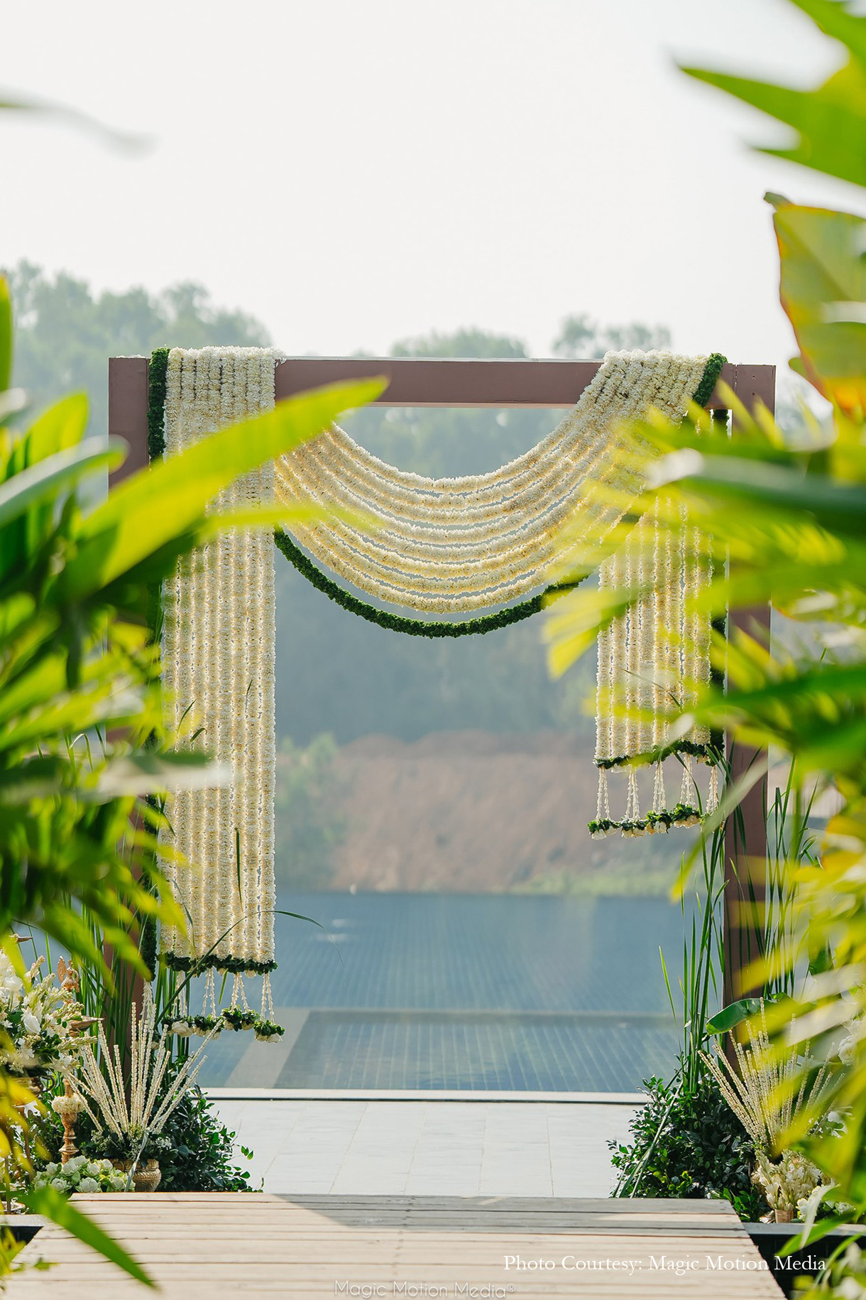 The couple wanted the decor to blend in seamlessly with the verdant greenery and natural landscape of the venue. The couple entrusted the team of Ties & Knots to bring their vision to life.