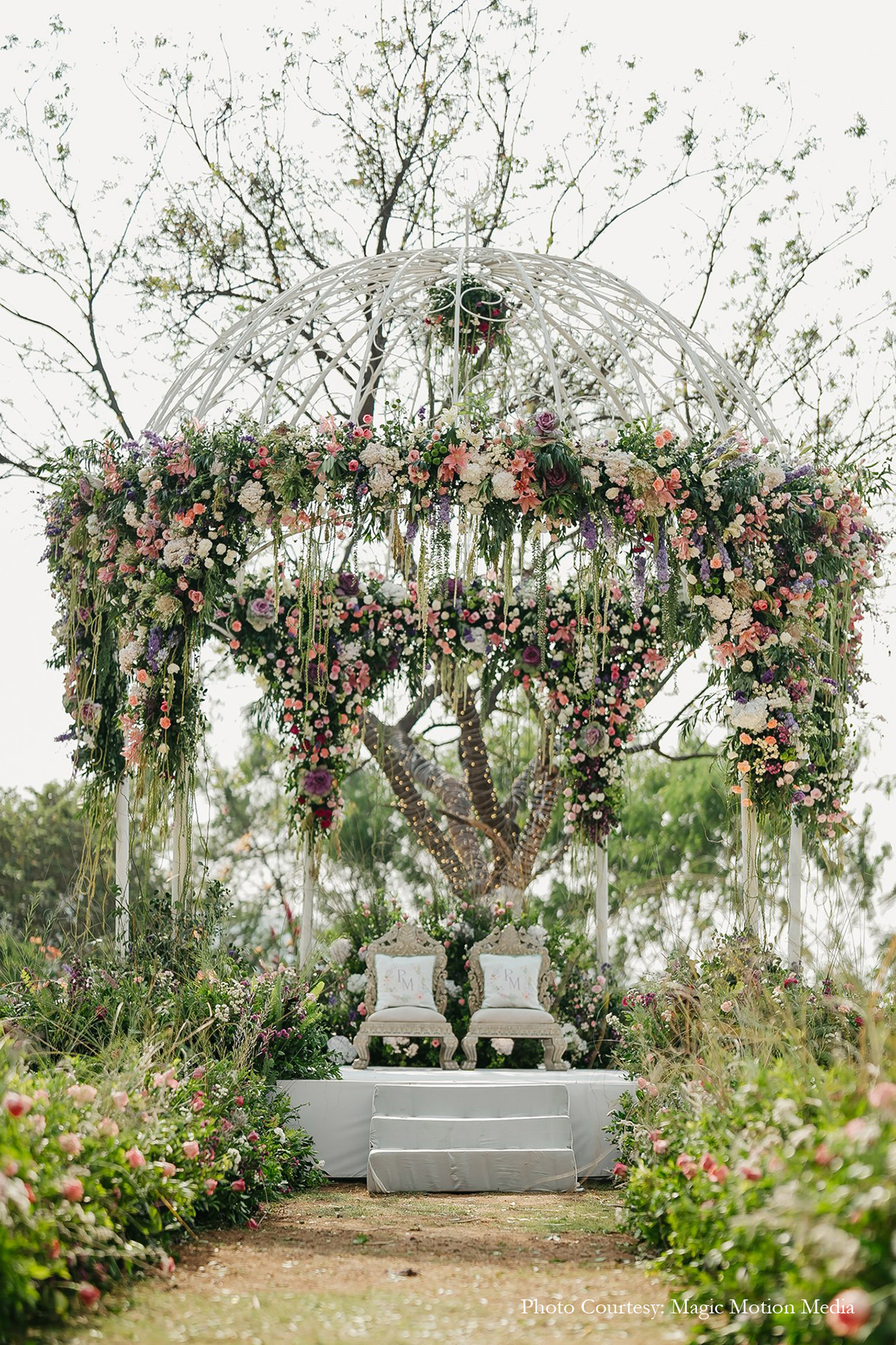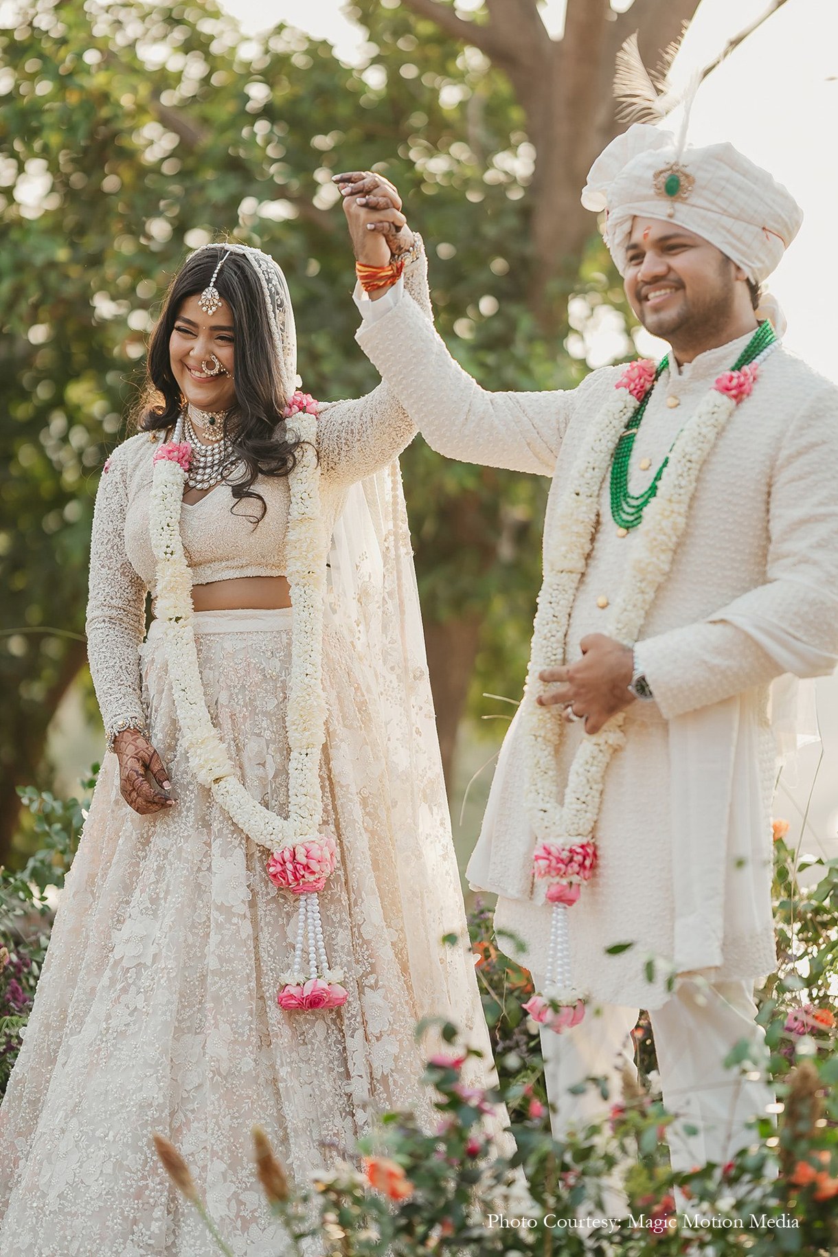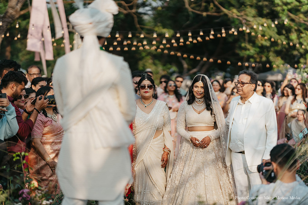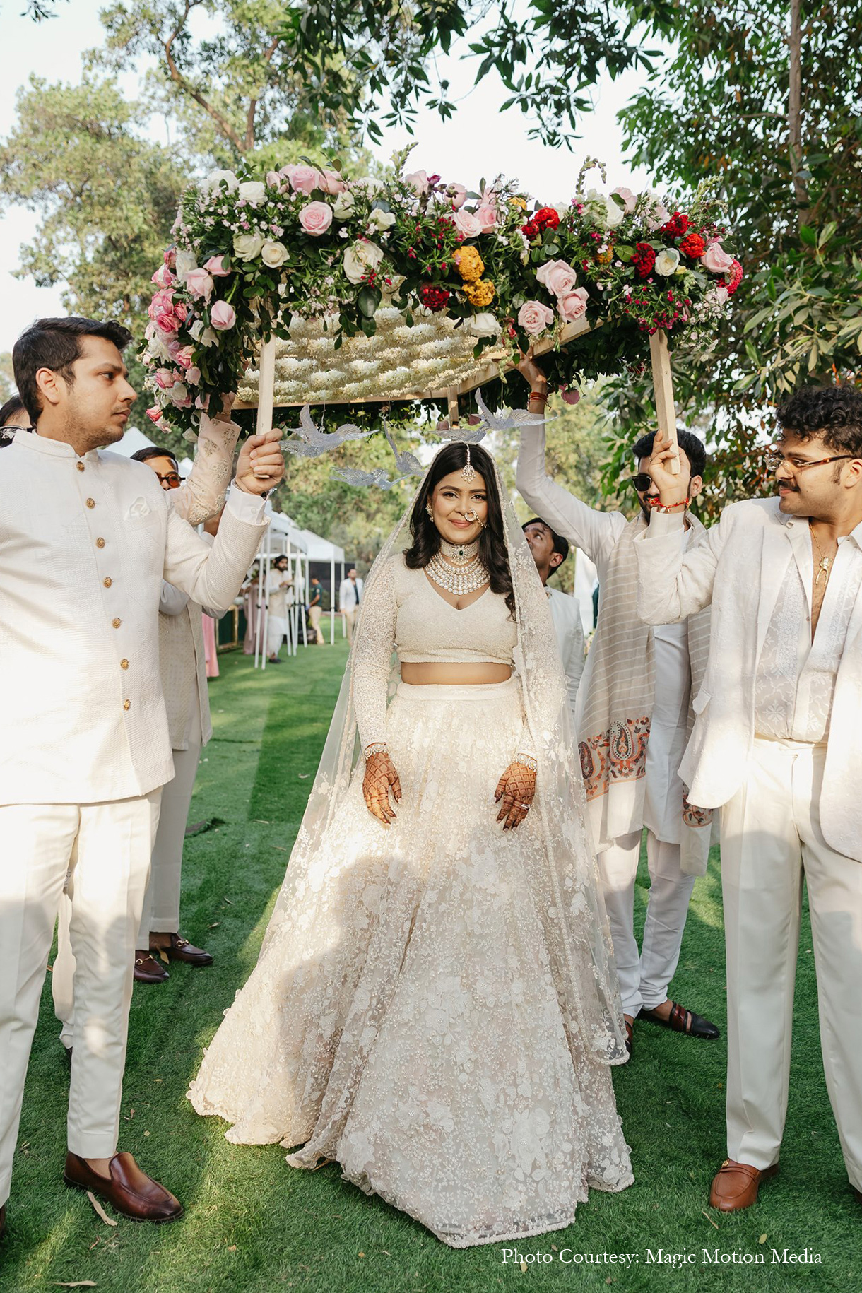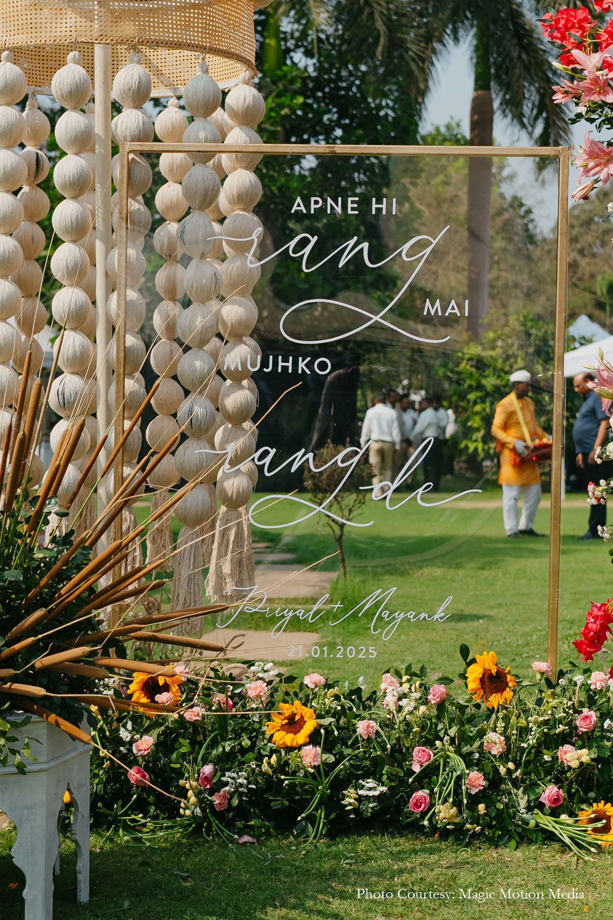 After a beautiful journey of 12 years that echoes the timeless sentiment of “Pyaar Dosti Hai” (love is friendship) from “Kuch Kuch Hota Hai”, Mayank Agarwal and Priyal Mewara celebrated their new chapter with a dream wedding at Oleander Farms. Framed by verdant beauty, the celebrations were meticulously brought to life by WeddingSutra Favorite – Ties & Knots.