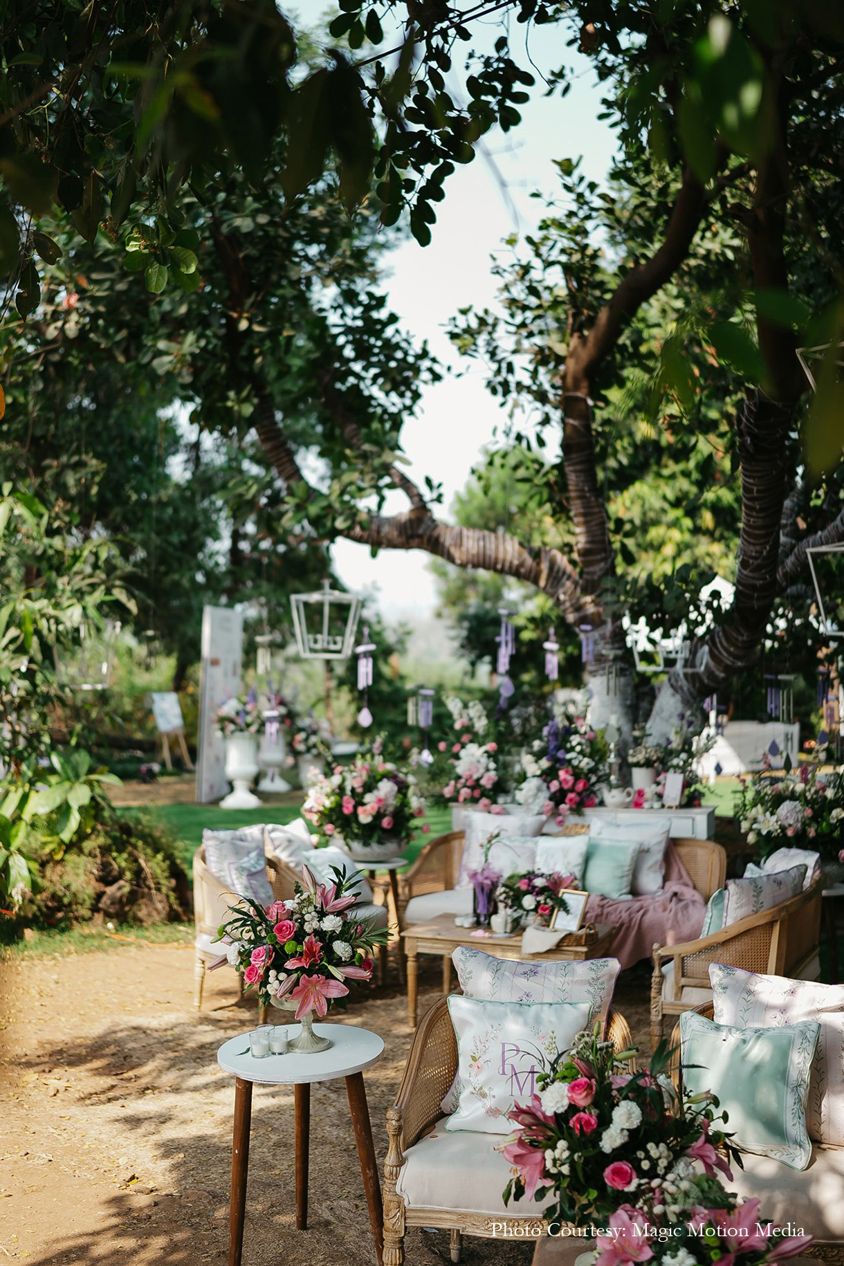 The idyllic property of Oleander Farms in Karjat played host to the couple’s dream venue. They share “After searching for venues for more than 4 months, a chance online encounter led us to Oleander Lawns. We wanted all of our events to be outdoors and wanted our venue to have an abundance of natural beauty, and Oleander Farms offered us exactly that, nestled in 200 acres of beautiful farmland. It also offered us convenient access, and the intimacy and freshness it offered despite being a huge property, made it the perfect choice for us.”
