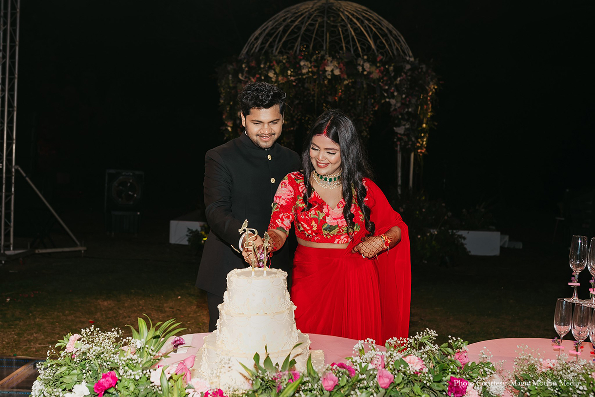 The wedding flowed effortlessly into the reception dinner, where the couple, now dressed in stunning red and black, embraced a glamorous avatar as they made their entrance as newlyweds. The air came alive with their first dance and champagne toasts, as everyone raised their glasses and took to the dance floor to celebrate Priyal and Mayank!