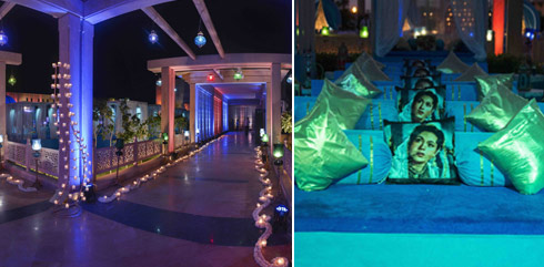 The wedding festivities started with the Haldi ceremony on the first afternoon, followed by lunch at the groom’s residence, and then a Qawaali Night. Says Purva, “The theme for the night was ‘Anarkali and Salim’ with candles, lanterns and a Mughal-inspired decor.”