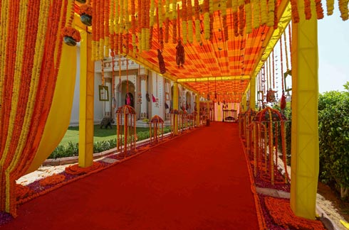 Post the Pheras, guests were served a lavish and delicious lunch in a typical Rajasthani ‘Bajjot & Thaal’ set up, amidst melodious live tunes of Sitar, Santoor & Tabla jugal bandi.
