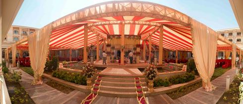 married here so why would we go outside? So our wedding planning started with deciding on the venues. We reviewed all the grandest venues in the city and decided on four different properties- Indana Palace, ITC Hotel, Hotel Pratap Niwas Jhalamand and Bal Samand Lake Palace. We chose Indana for guests to stay at, as it is centrally located near all the other venues. We also loved their palatial spaces, regal charm and the great variety of cuisine they offer. We were already quite familiar with their staff and their warm hospitality always helped us take the decision quickly.”