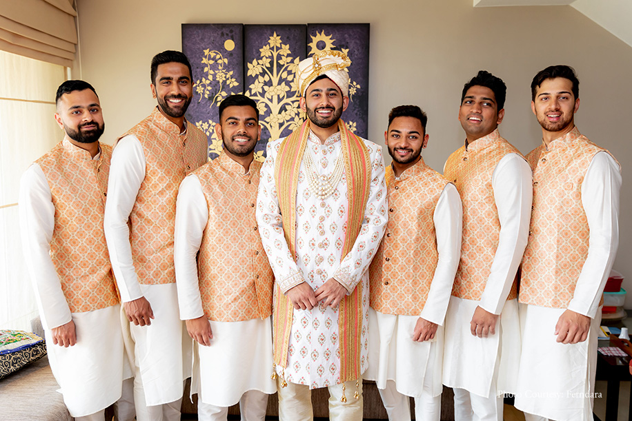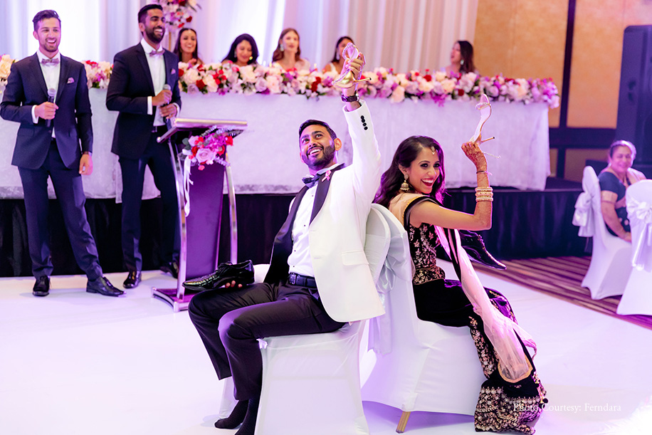 The grand finale to the wedding was packed with lots of incredible performances, sentimental speeches and foot-tapping music. The team of talented photographers shared an incredible ‘same day edit’ video that included snapshots of special moments across each event. They even included some shots from the beginning of their reception. The evening ended on a high note with DJ Yaths keeping the party going till about 5 am in the morning. It was the perfect wrap up to their wedding celebrations. Raksha looked stunning in a dark purple, velvet lehenga while Deepesh looked dapper in a white tuxedo.