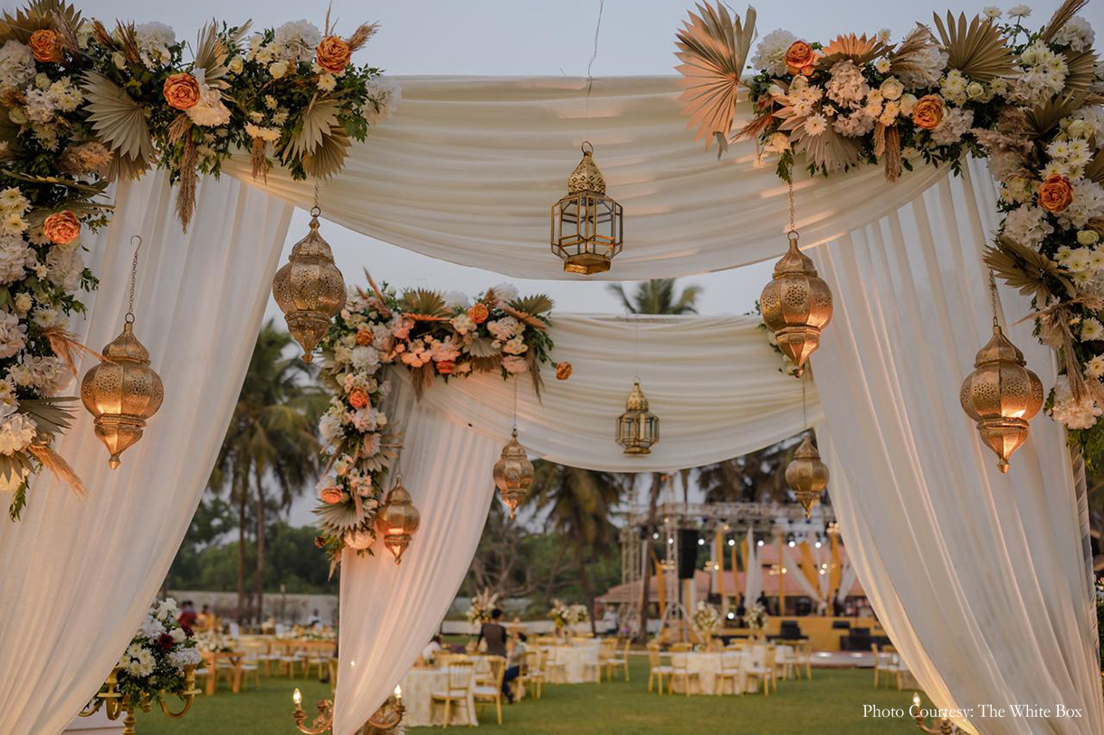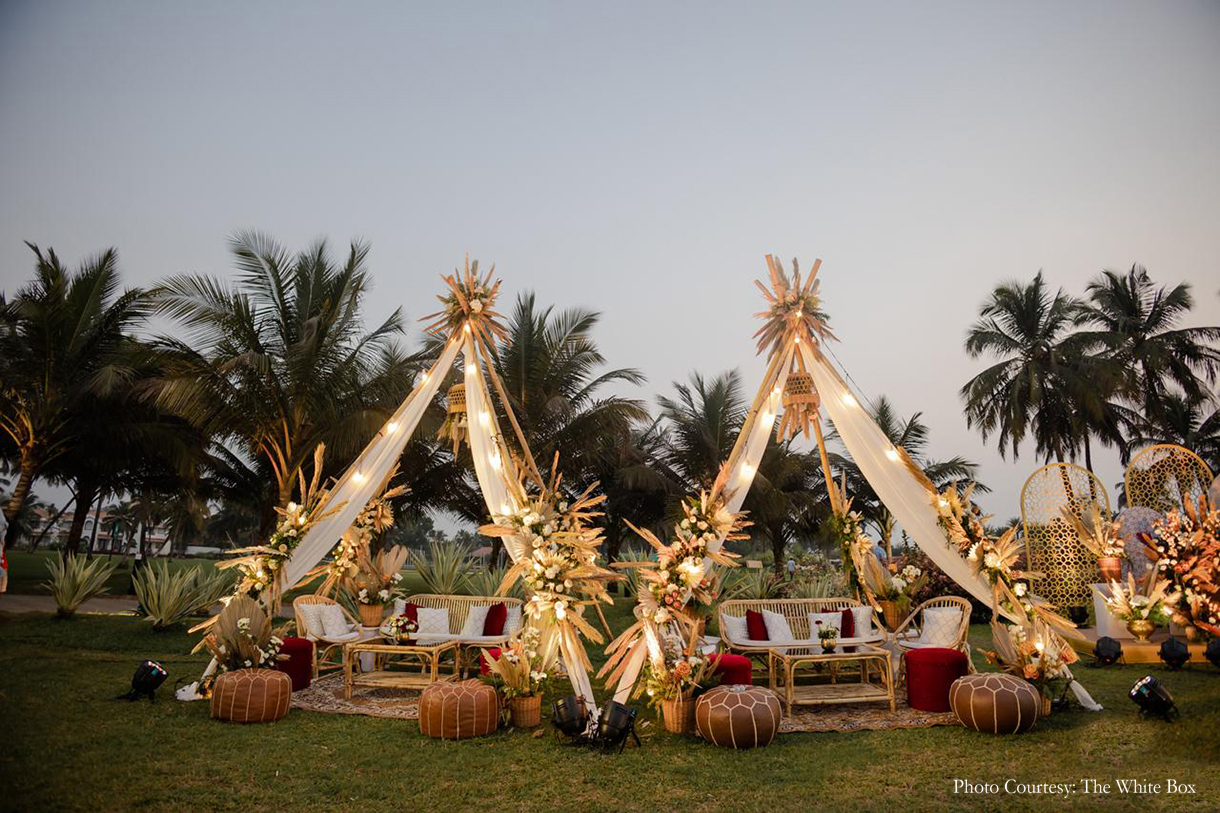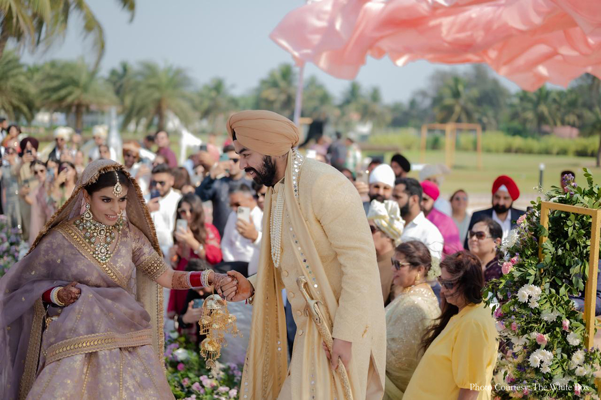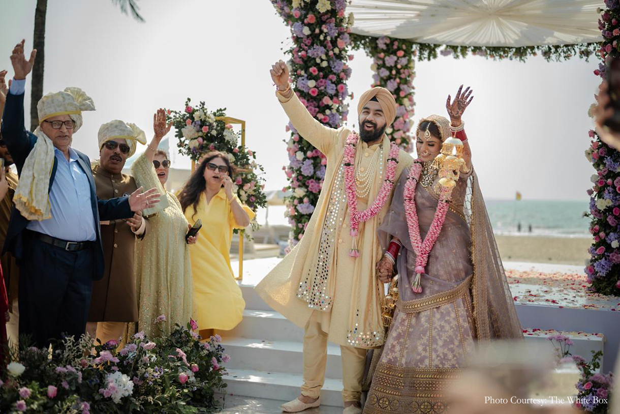 When in Goa, a beachside wedding ceremony is the obvious choice! For their big day, the couple chose to go with a magical beachside ceremony. With a dazzling walkway overlooking the sea and lavender blooms contrasting beautifully against the blue sky – the ceremony looked stunning.