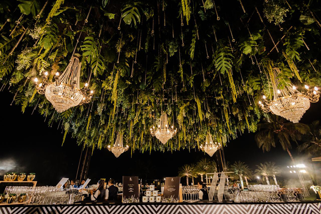 Inspired by Moroccan elements, the mehndi was hosted outdoors as the sun set. The ‘under the stars’ themed evening flaunted a delightful array of earthy tones accentuated by ivory drapes. Exotic lanterns and intricate patterns added a glamorous edge to the setting.