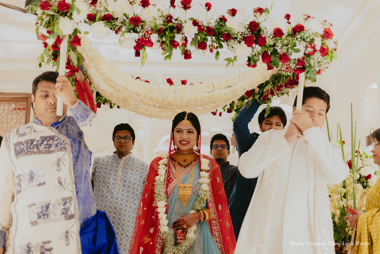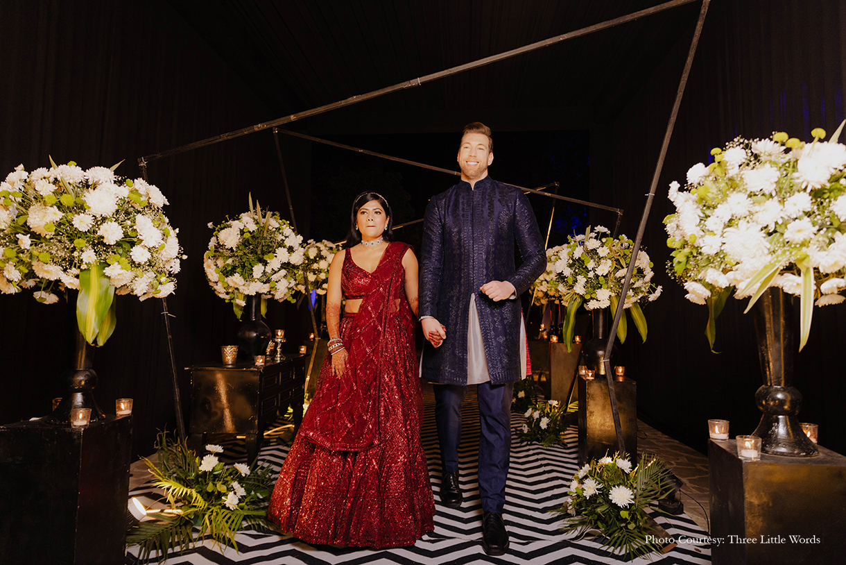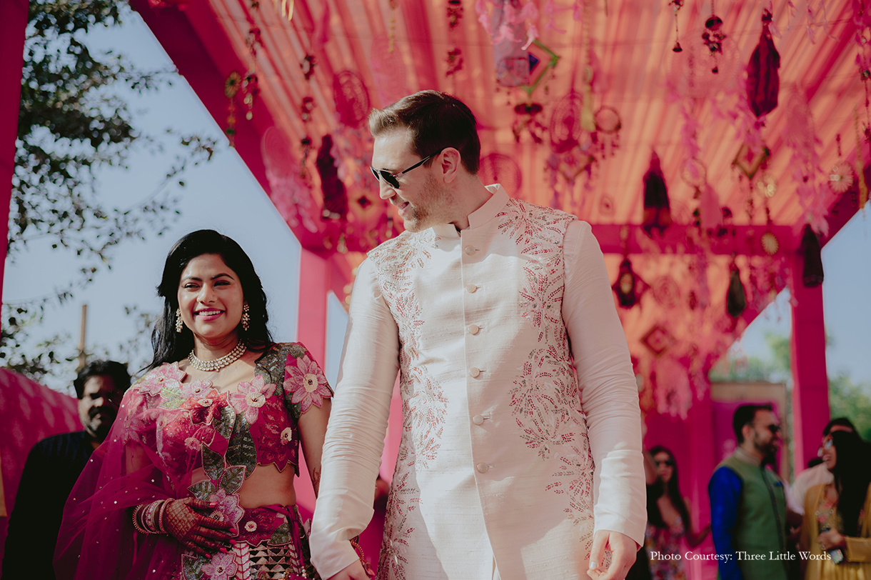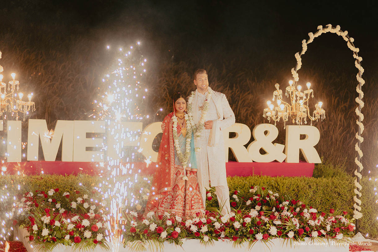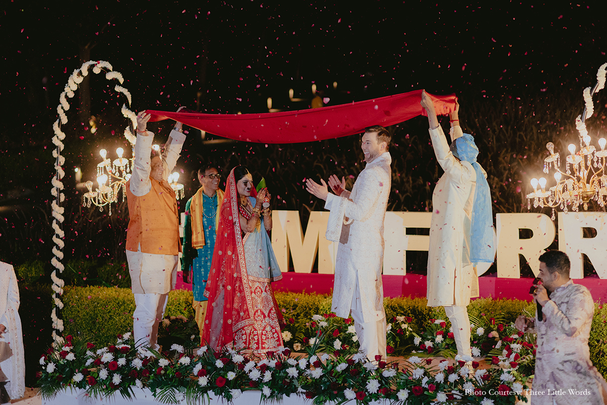 At Ruchita Poddar and Ryan Fletcher’s enchanting wedding at Alila Fort Bishangarh in Rajasthani, cultures seamlessly blended and love transcended borders. This celebration, designed by WeddingSutra Favorite – Discovery Events was a heartfelt tribute to the beauty of diversity, filled with vibrant traditions and cherished moments.