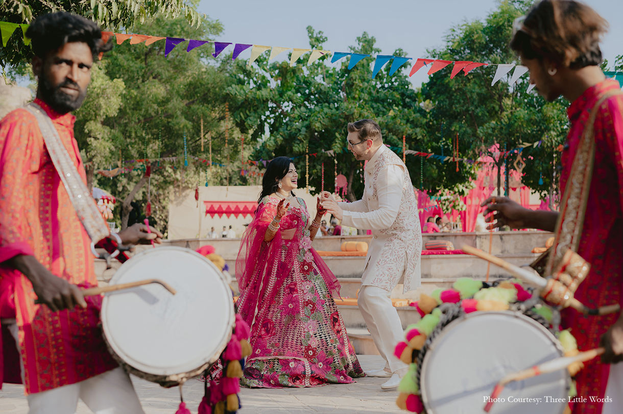 This NRI couple's fusion destination wedding in Rajasthan was grand and vibrant, embracing local flavors and honoring their cultural roots.