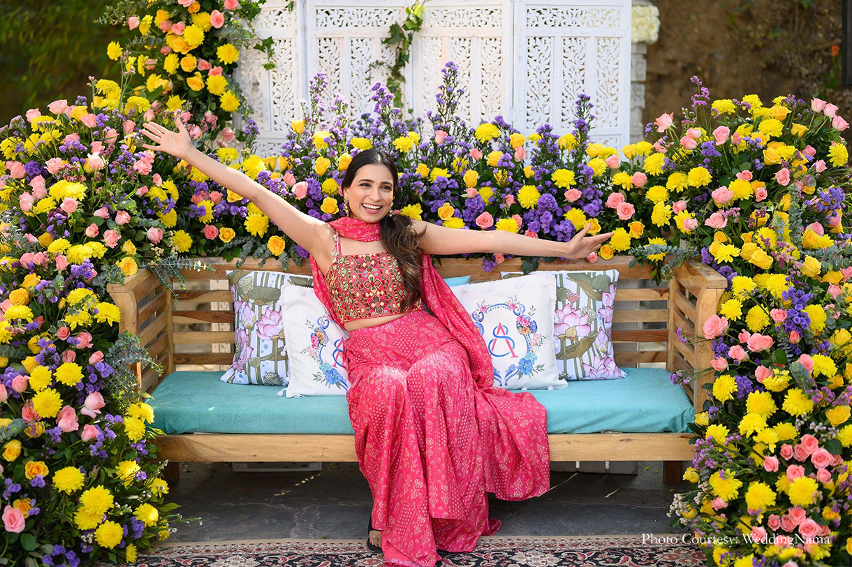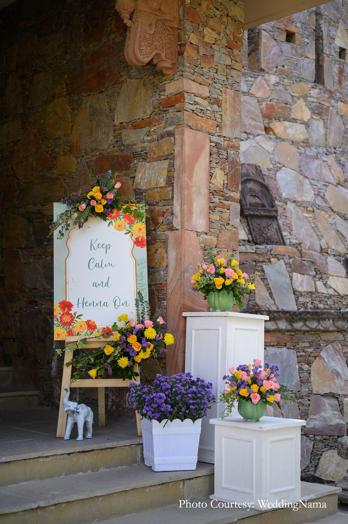 Neha Wadhawan from The Doli Diary shares, “Sachi and Arpit’s mehndi was a vivid one. The floral arrangement gave the open-air venue a natural feel and filled the air with fragrance. The couple was keen on every event looking sophisticated and this was exactly that with a touch of desi color!”