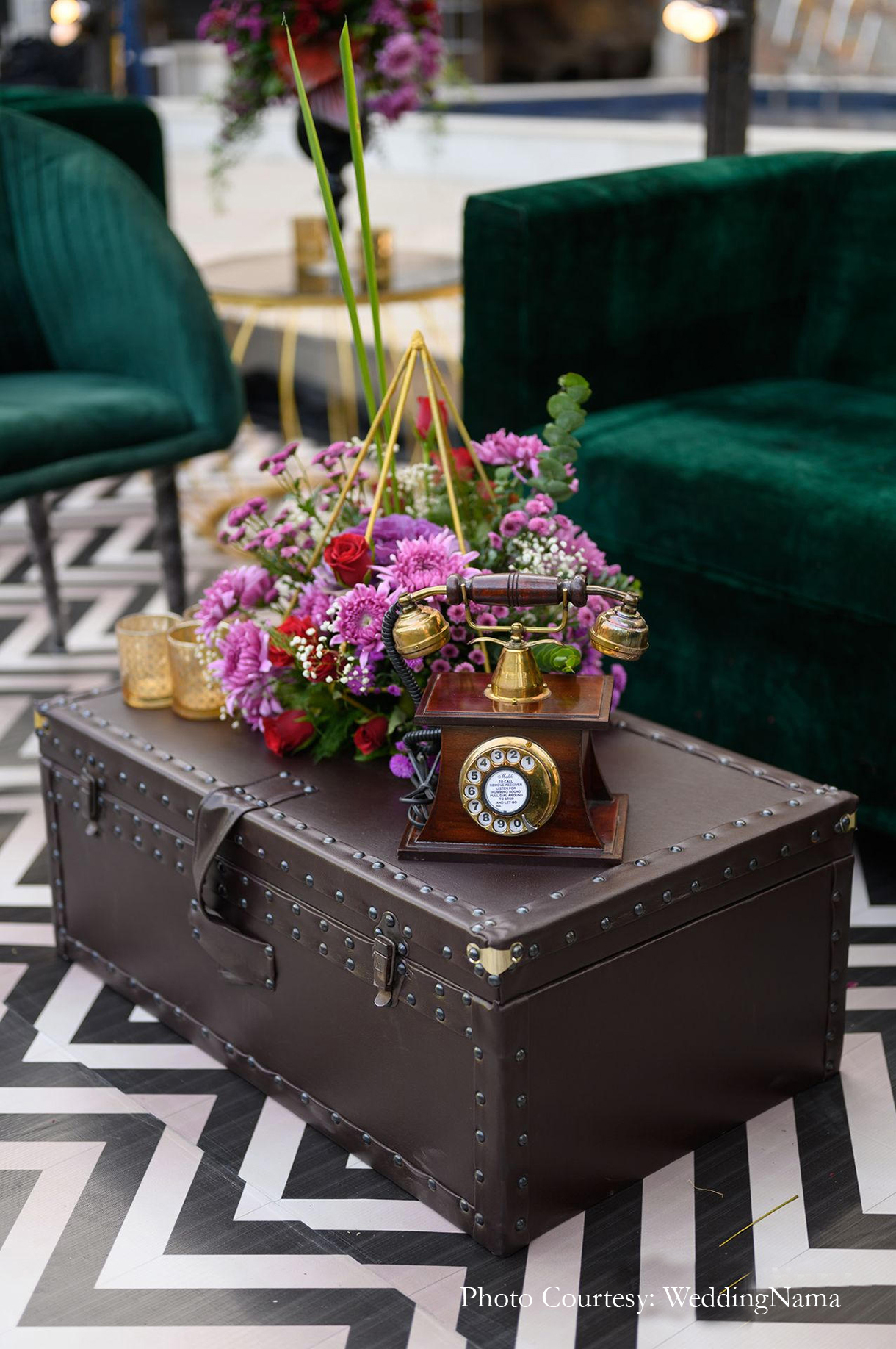 Neha shares, “Ardent admirers of Bollywood, the couple hosted a filmy sangeet for their guests where they danced to their favorite tunes. Their loved ones took part just as eagerly by setting the stage on fire with their moves. Retro elements, like a vintage telephone and arches with light bulbs gave the look of a retro Bollywood night.”