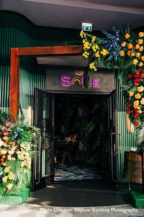 The glamorous Sangeet night was tailored with quirky details from the couple’s college love story for a psychedelic academia themed party, the likes of which has never been seen before. Neon hues, heart caricature elements, books and more, added fun details to the night, including a statement heart shaped entry passage. The couple exchanged rings that arrived in hollow books customized with their story, making for a memorable experience. The night saw lively music and dance performances that had everyone reveling in high spirits.