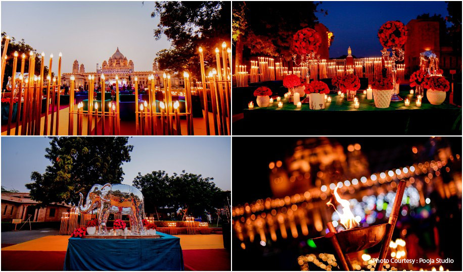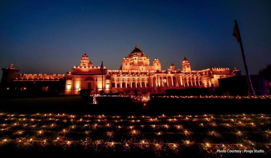 Venues: WelcomHotel, Jodhpur (Fusion Night, Mehndi, Haldi, and Myra), WelcomHeritage Bal Samand Lake Palace (Youngsters’ Night), Taj Umaid Bhawan Palace Jodhpur (Sangeet, Pheras, and Reception)