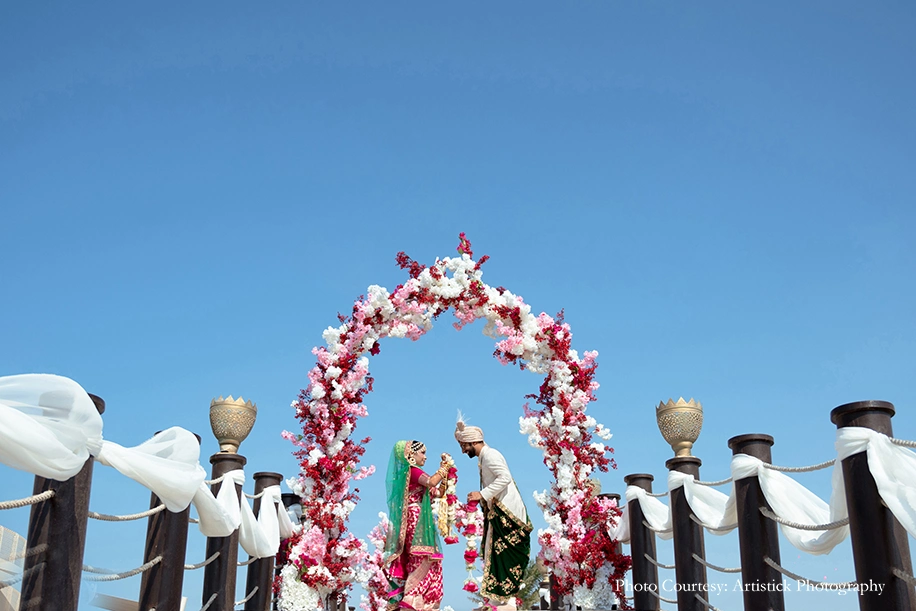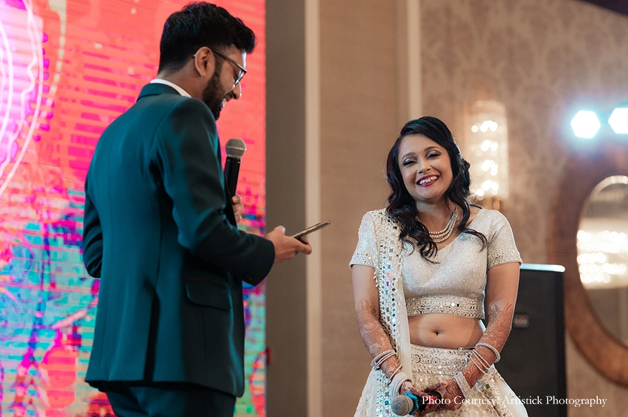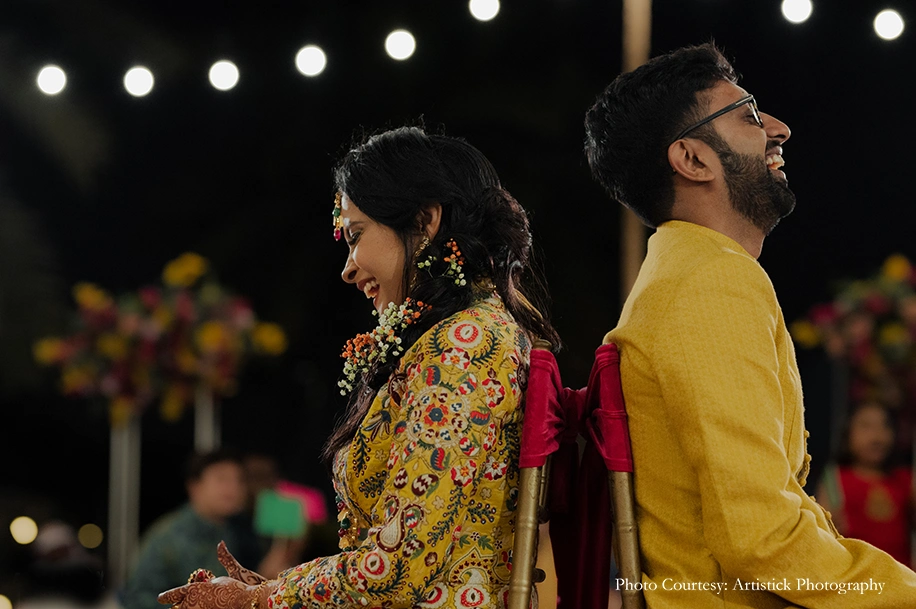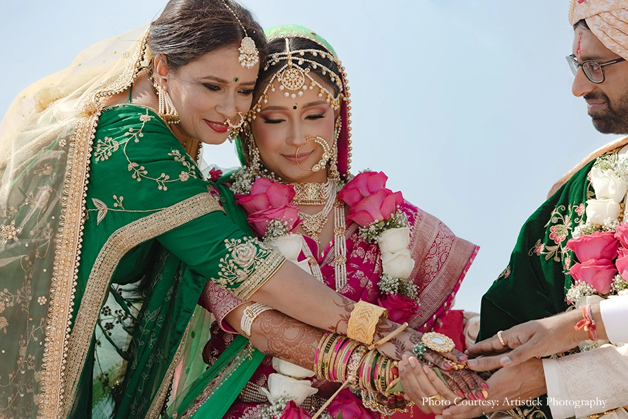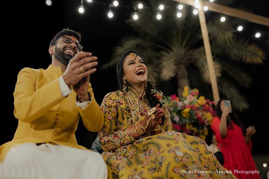 The couple entrusted the team of Delhi-based Artistick Photography to capture their precious moments. They share, “We have no words to describe Anmol and his team. Every single one of them was professional, understanding and knowledgeable. They were friendly and good at getting us to pose with ease. They blended in seamlessly at the events and surprised us with some fantastic candid shots! It was an absolute pleasure and honor to have them capture our big day. We would work with them again in a heartbeat.”
