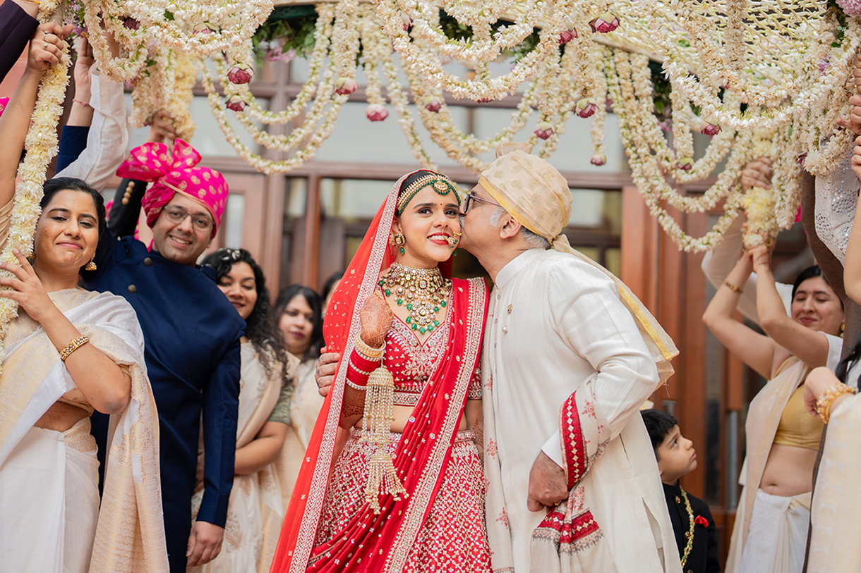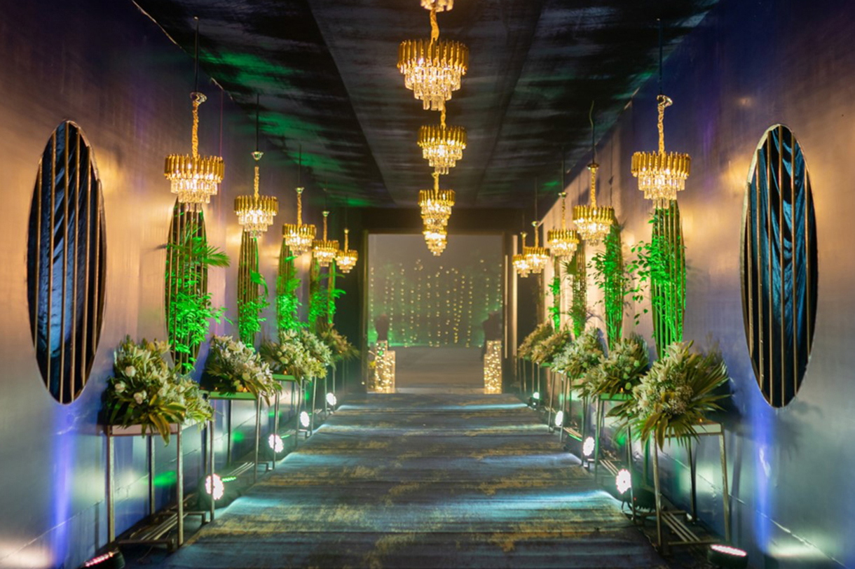 KNCC in Agra played host to the couple’s cocktail party. Located ten minutes away from the iconic Taj Mahal, the venue boasts sprawling lawns and multiple banquet halls where Sanjika and Keshav’s dreams came to life. Well-connected, vast and offering multiple amenities, this venue was perfect for the couple’s grand celebration.