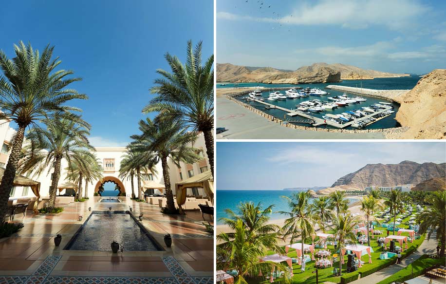 The #SashSam wedding exuded grandeur and sophistication from the first event itself; the mehndi, held during the day at the beach and lawns of Al-Bandar Shangri-La. None of the functions were fettered by themes and it was evident, from the tasteful elegance of the teal and coral décor. Planned by Shaadi Squad, with the decor designed by supremely talented Bunty Bajaj (mother of the groom) and Mosaic Events, Muscat, the venue was scintillating against the backdrop of the russet mountains, white sands and blue waters.