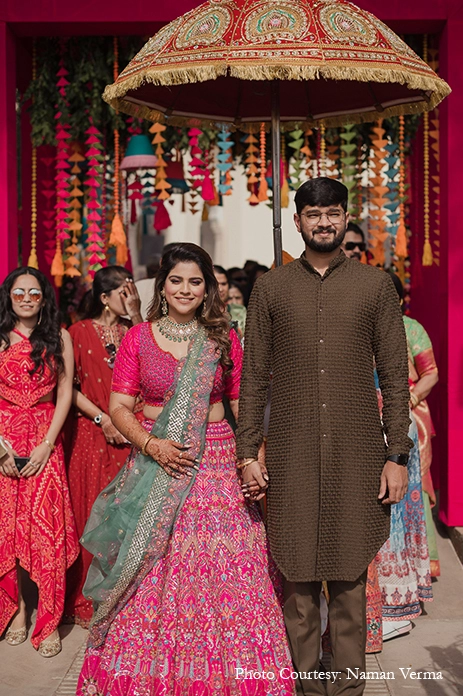 Bride’s Outfits: Jade by Monica and Karishma (Mehndi), Falguni Shane Peacock (Sangeet), Anushree Reddy (Haldi), Sabyasachi Mukherjee (Wedding)