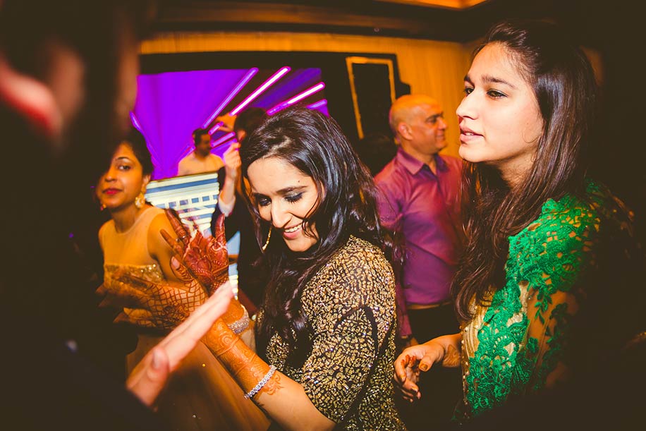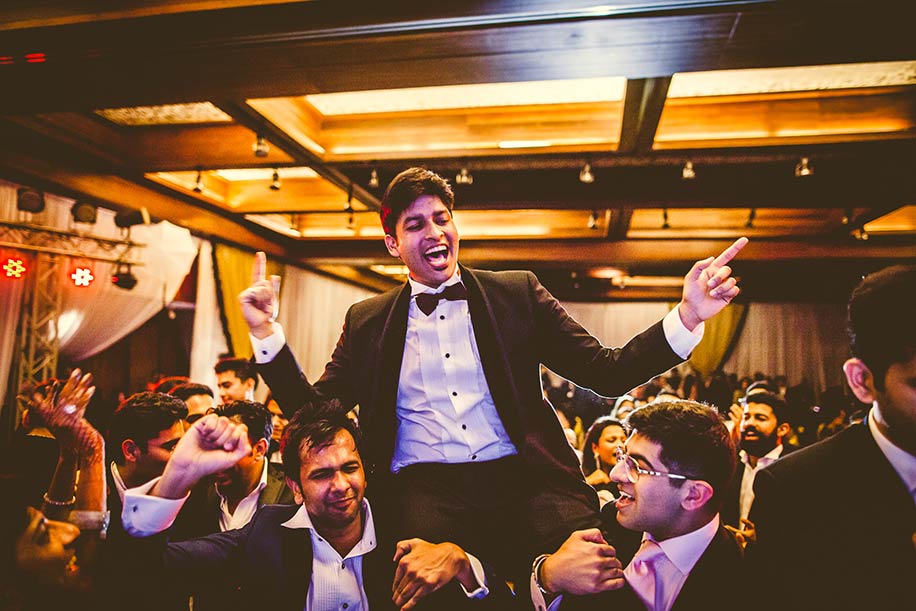 “The Mehndi Sundowner was followed by a Cocktail Night which has a ‘The Great Gatsby’ theme – think gowns and tuxedos, black and gold… The focus of the night was on drinking and dancing. I wore a black and gold ensemble by Shantanu & Nikhil, and Udit looked dapper in a black tuxedo with bowtie by Rohit Gandhi and Rahul Khanna.