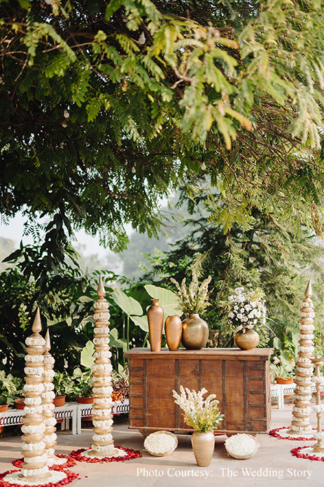 “For the haldi, we kept everything light and easy. Subtle, clean colors were used and a phoolon ki holi ensured everyone had a playful time. And, as the music started everyone danced the garba! We wanted the entire event to smell fresh and used incense sticks that reminded everyone of early morning walks and mandirs”, shares Shivani.