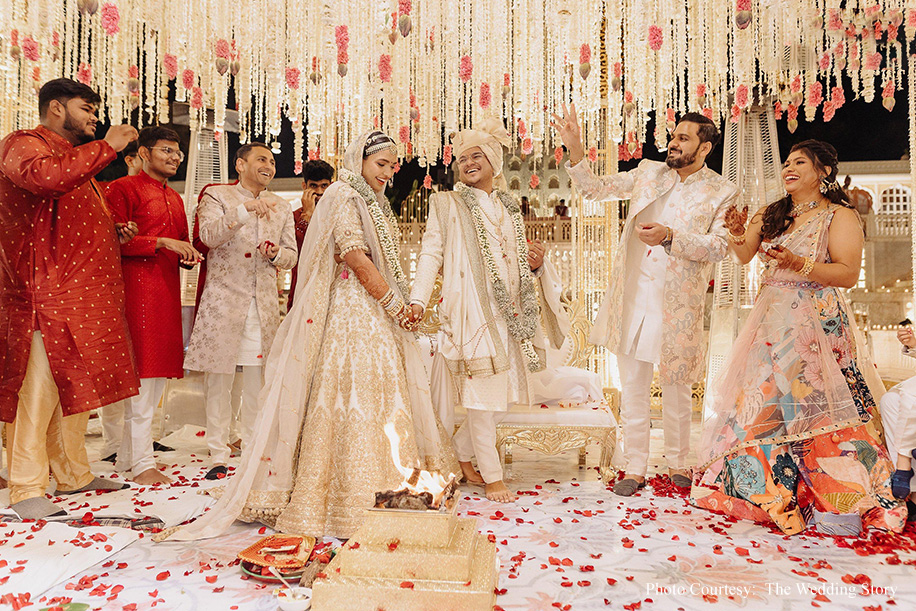 Bride’s Outfits: Radhika Airi (Mehendi), Arpita Mehta (Sangeet), Prima Designer Studio (Haldi), Manish Malhotra (Wedding)