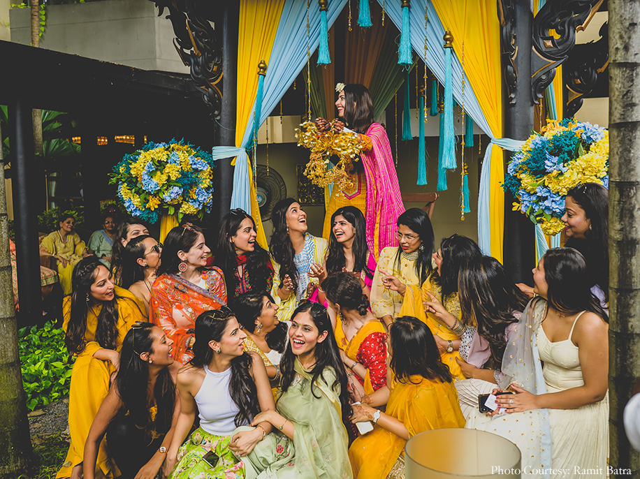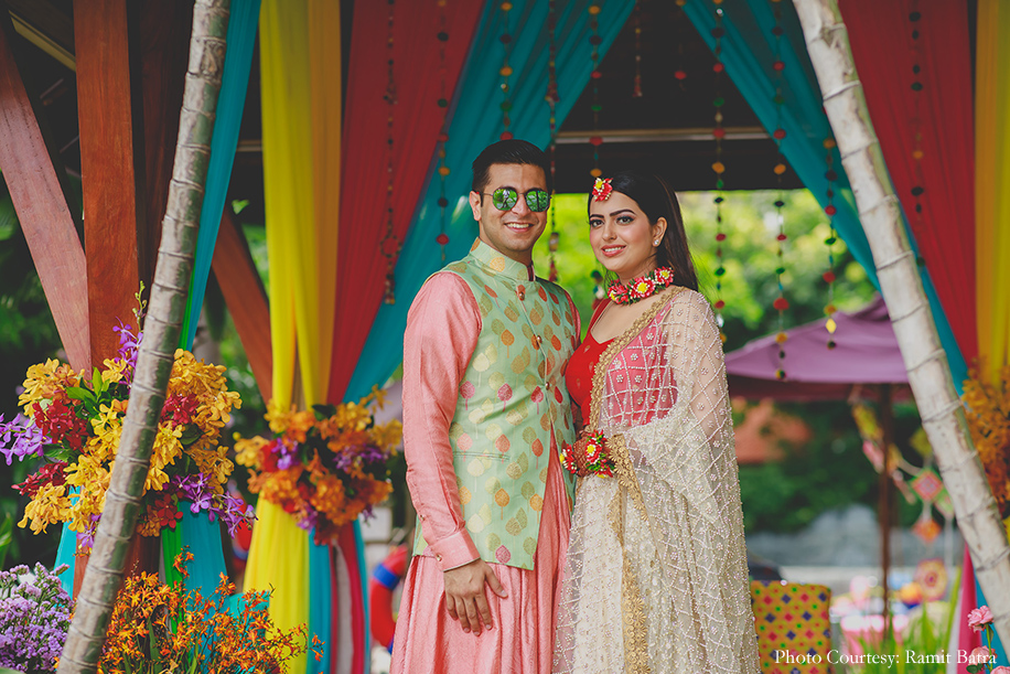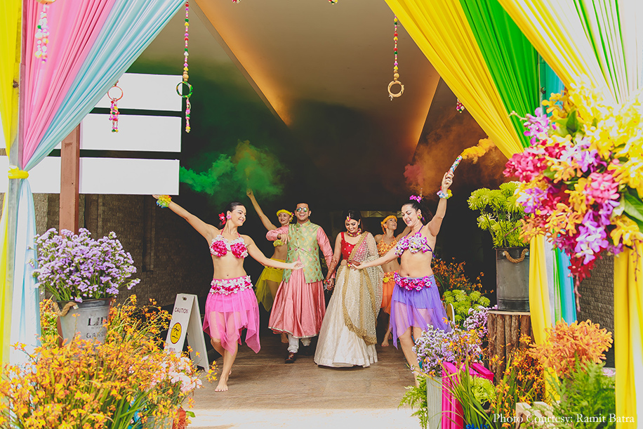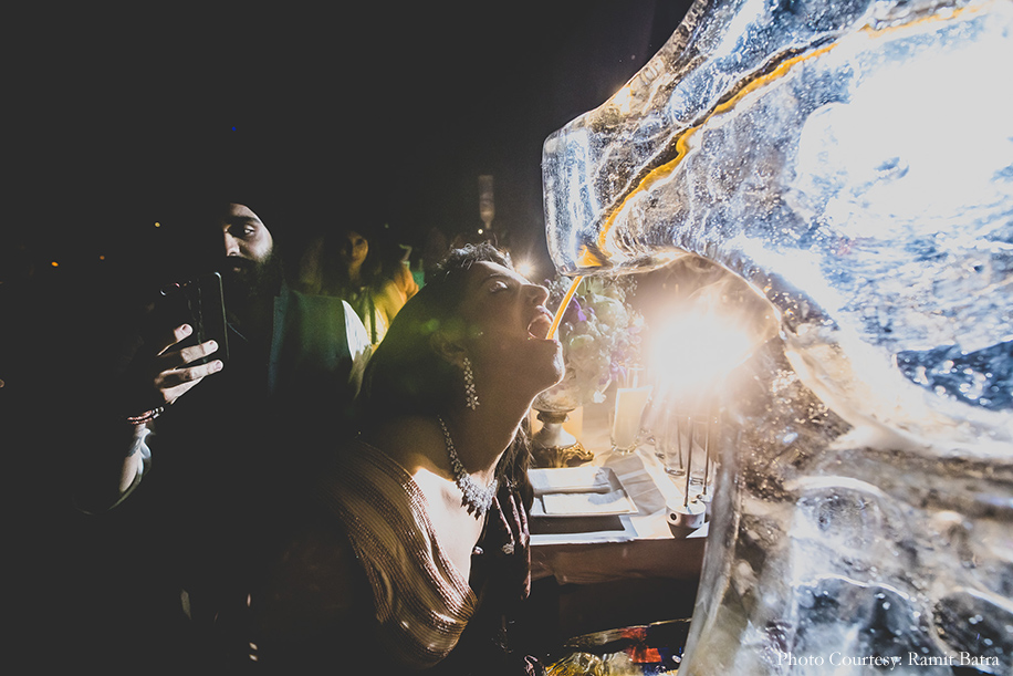 The theme for their mehendi and pool party was ‘Caribbean Carnival’. There was a live band, Los Latinos, along with Ramona girls performing for the guests. The decor was vibrant and there were games and exotic cocktails to keep guests entertained.