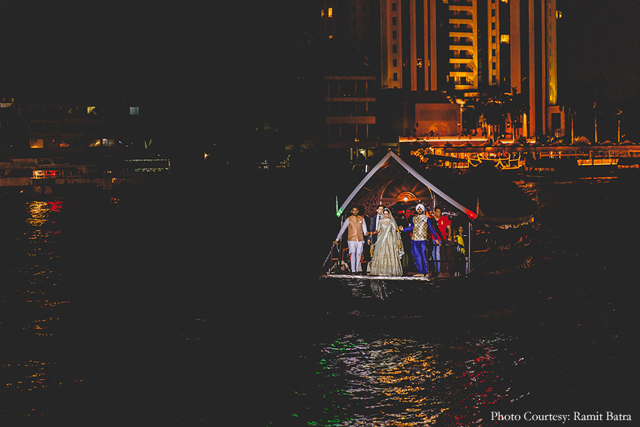 She says, “I was nervous as I felt I might fall into the river! Luckily, I had support from my sister, friends, Ramit and Yuvraj. I forgot all my stress once the spotlight was on me. An extremely melodious tune played in the background, giving me goosebumps as the boat proceeded towards the pier. Once I stepped off the boat everything faded, and all I could see was Ashish. We had such cute moments throughout the evening and they’re still so fresh in my heart.”