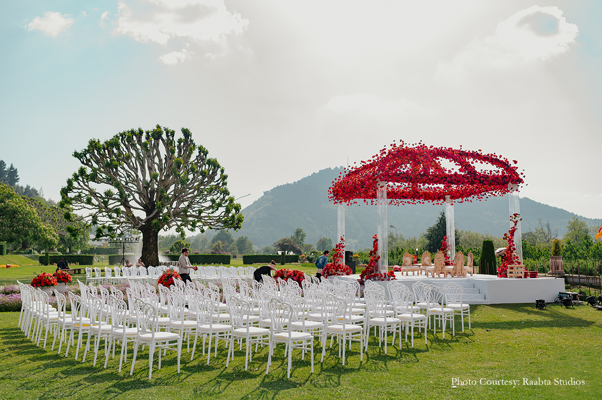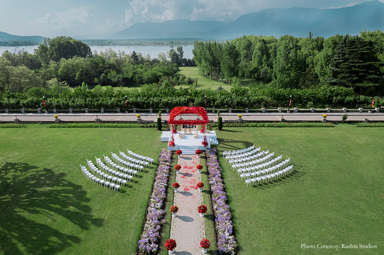 Venues: Fortune Resort Heevan, Srinagar – Member ITC’s hotel group (Bridal Mehndi); The Lalit Grand Palace Srinagar (Welcome Lunch, Chooda and Haldi, Wedding); Vivanta Dal View (Mehndi and Sangeet)
