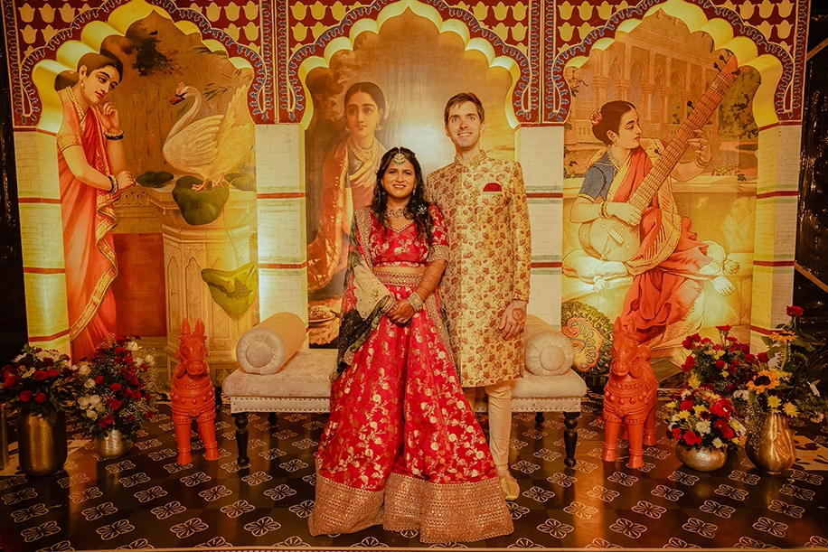 From the crafts of Rajasthan and Meenakshi Sundareshwar to paintings of artist Raja Ravi Varma, the wedding decor celebrated India’s artistic heritage.