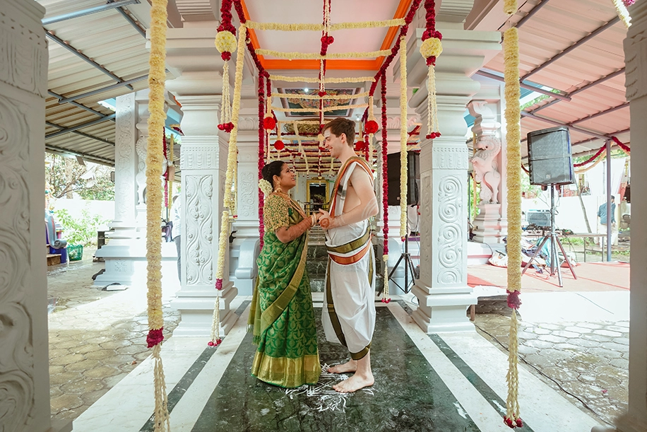 Sneha Subramanian, the Head of Marketing for a renowned Tech company based out of Chennai, met Software Engineer Ethan Fischer while studying at the University of Chicago where they were pursuing their respective courses. Their friendship evolved over time into love, and they blended their cultures and families to wed in a vibrant wedding celebration in Chennai.