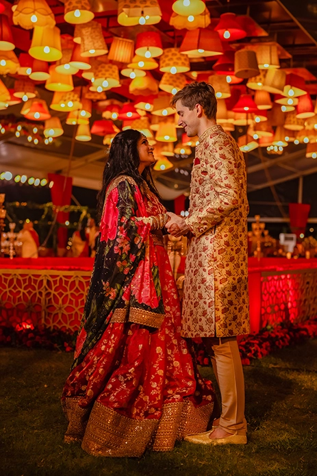 Sneha and Ethan wanted their wedding to be imbibed with the rich flavors of both their cultures and heritage. Also, with the wedding being hosted in India, they wanted to imbibe the essence of Indian culture and traditions in their ceremony and decor.