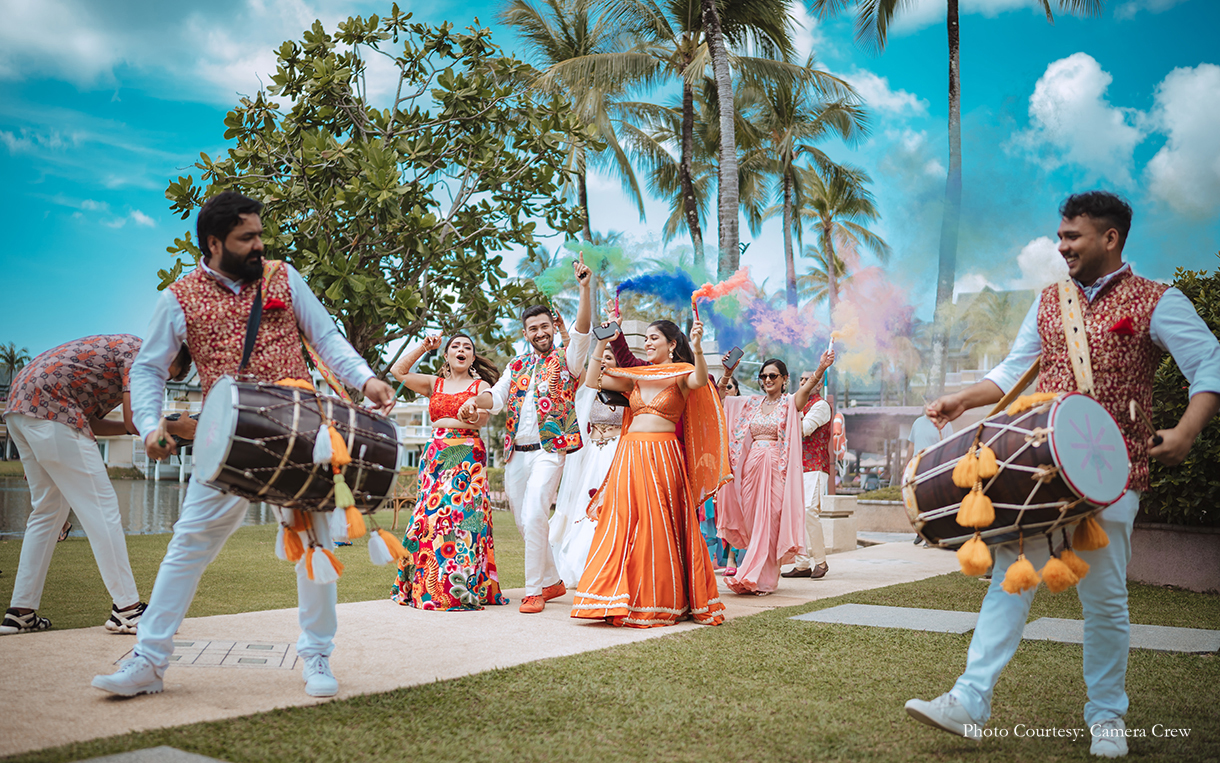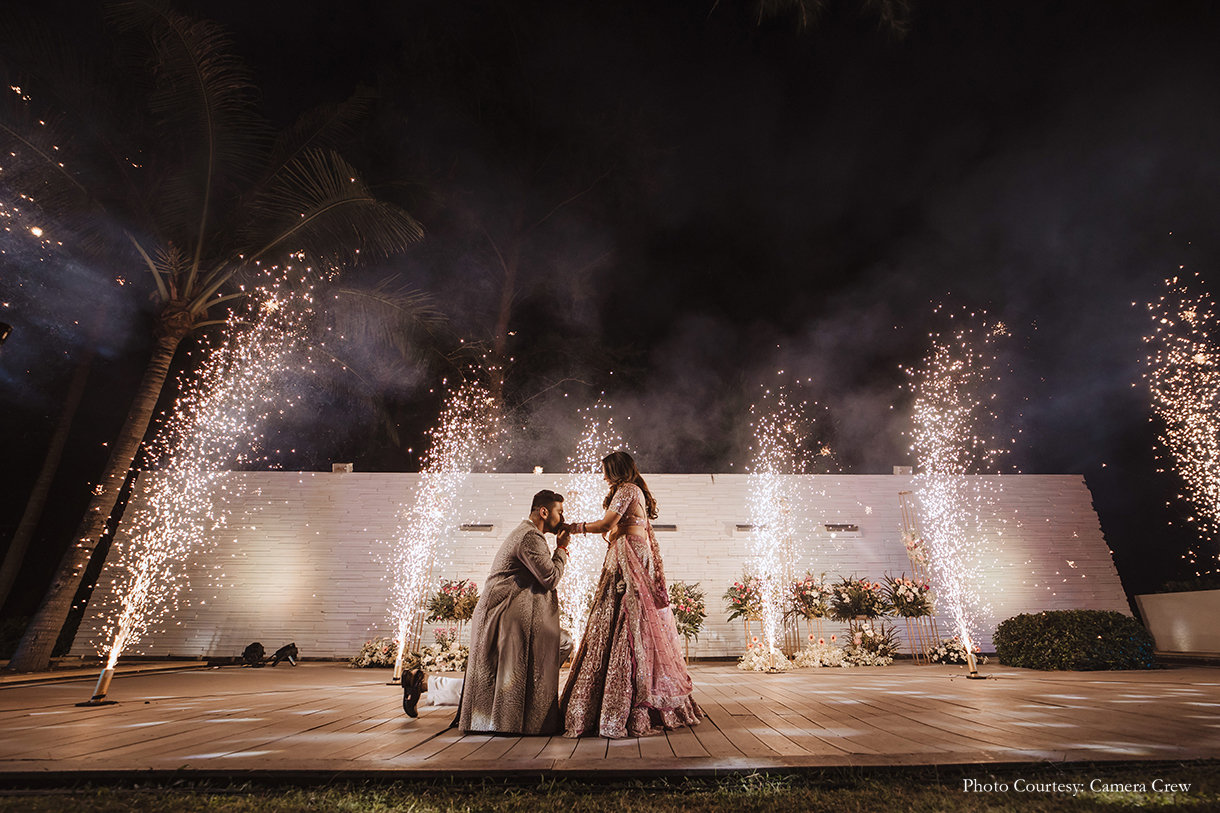 Bride’s Outfits: Vridhi Somaani (Haldi), Tarun Tahiliani (Sundowner), BOBO Calcutta (Thai Carnival), Dolly J (Sangeet), Jade by MK (Wedding), Cherie D (Reception)