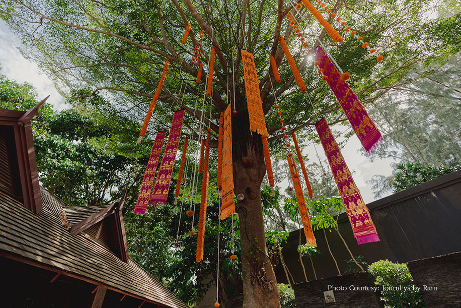 Their haldi ceremony was personal and intimate with the bride wearing a Kanjivaram saree that her mother wore at her own wedding reception. The groom wore a south Indian veshti and shirt set for the very first time. JW Marriott’s chef’s served the wedding squad a delicious South Indian feast, and Keeran the Wedding Planner’s team’s simple yet beautiful decor brought Chennai to Phuket for a few magical hours.