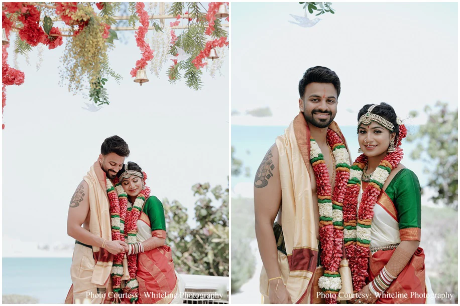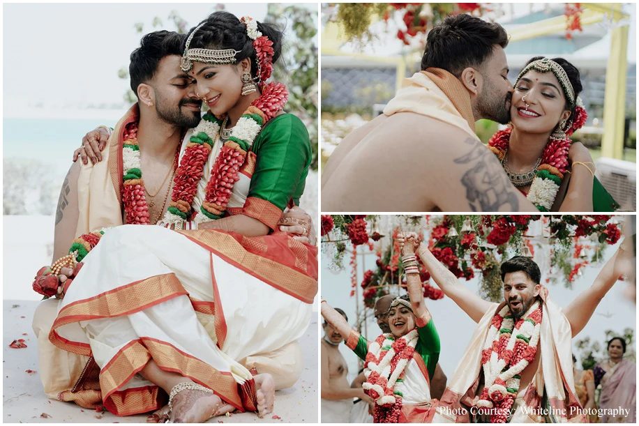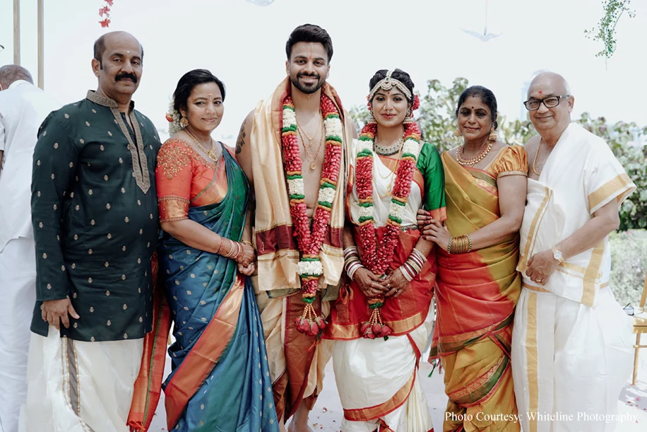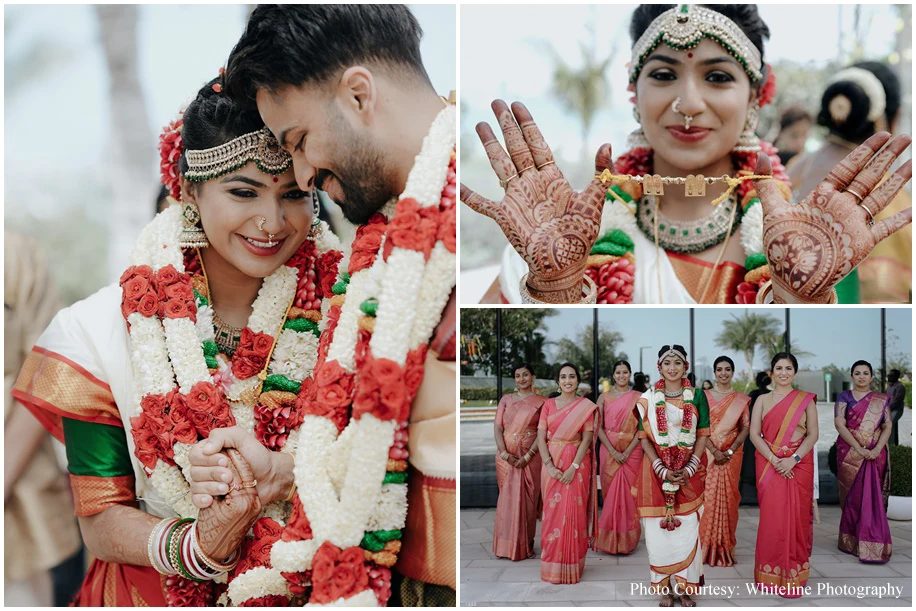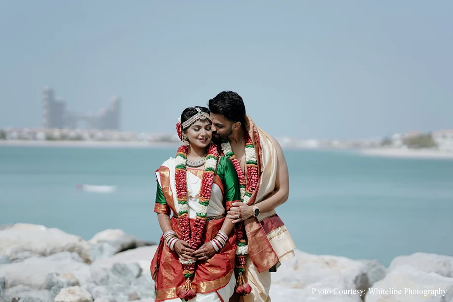 Breezy yet traditional, Sudhakshina Shivkumar, a baker and Dheeraj Girijan, a businessman and DJ’s wedding under the sunny Dubai sky was a luxurious one. Be it the vivid Sangeet or the serene Wedding ceremony, every event at their union was meticulously planned by WeddingSutra Favorite – OH! So Desi Events.