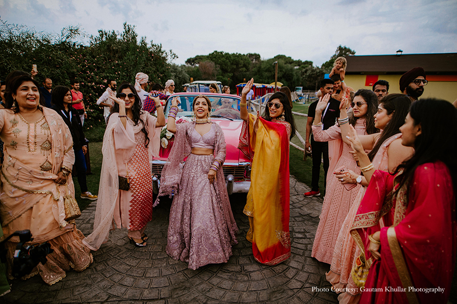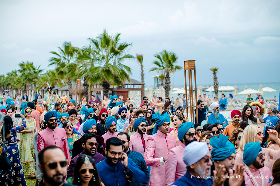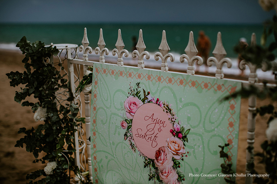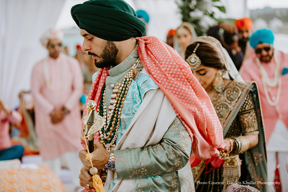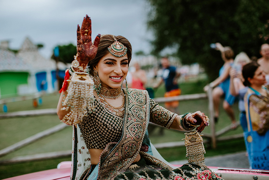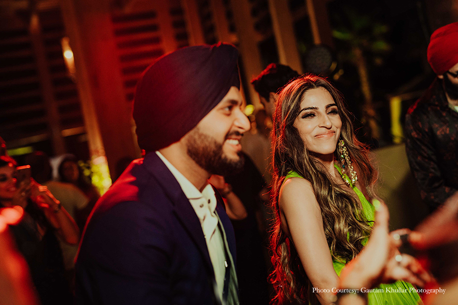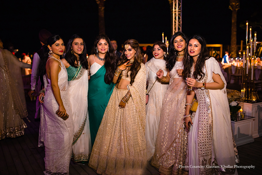 Bride’s Outfits: Sukriti & Aakriti (Mehndi and Sangeet), Swapnil Shinde (Beach Party), Sabyasachi Mukherjee (Wedding), Gaurav Gupta (Reception)