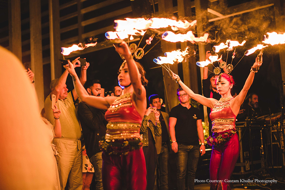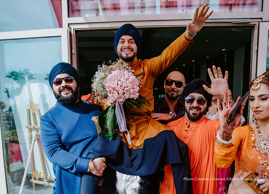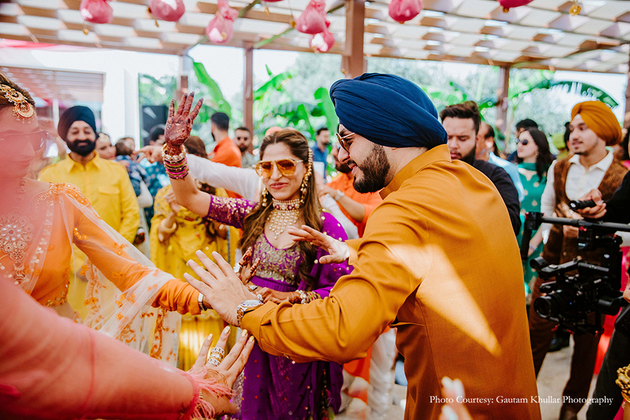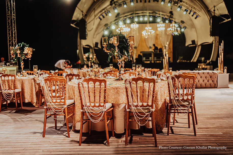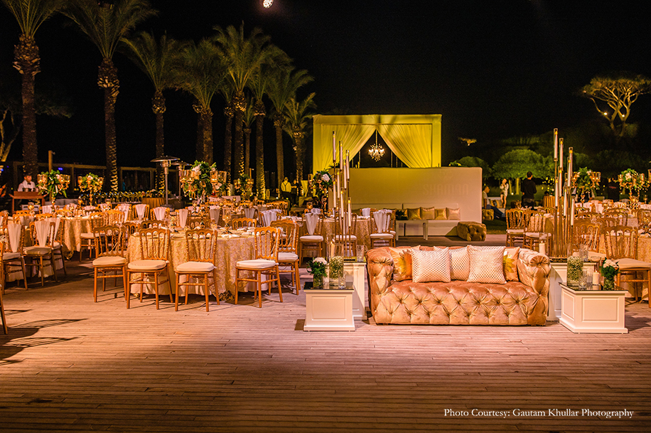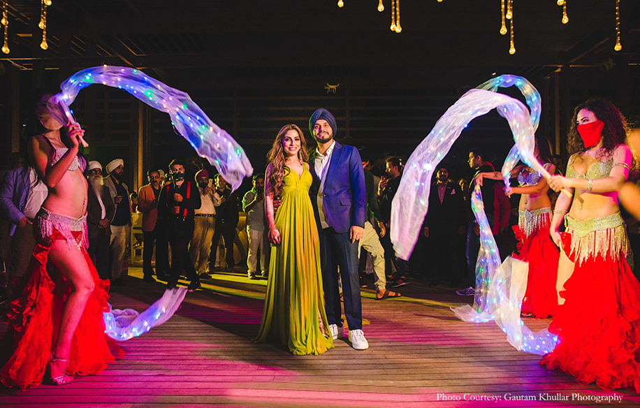 Bride’s Outfits: Sukriti & Aakriti (Mehndi and Sangeet), Swapnil Shinde (Beach Party), Sabyasachi Mukherjee (Wedding), Gaurav Gupta (Reception)
