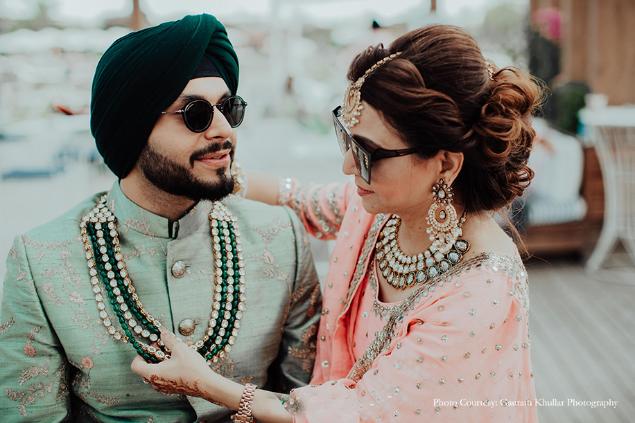 Groom’s Outfits: Shantanu & Nikhil (Mehndi), Karrtik D (Beach Party), Sabyasachi Mukherjee (Wedding), Rohit Gandhi + Rahul Khanna (Reception)