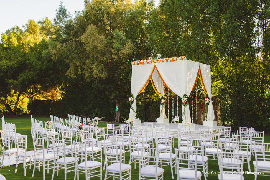 Tanvi and Satish’s breezy outdoor wedding and reception in Dubai were intimate events incorporating North and South Indian traditions