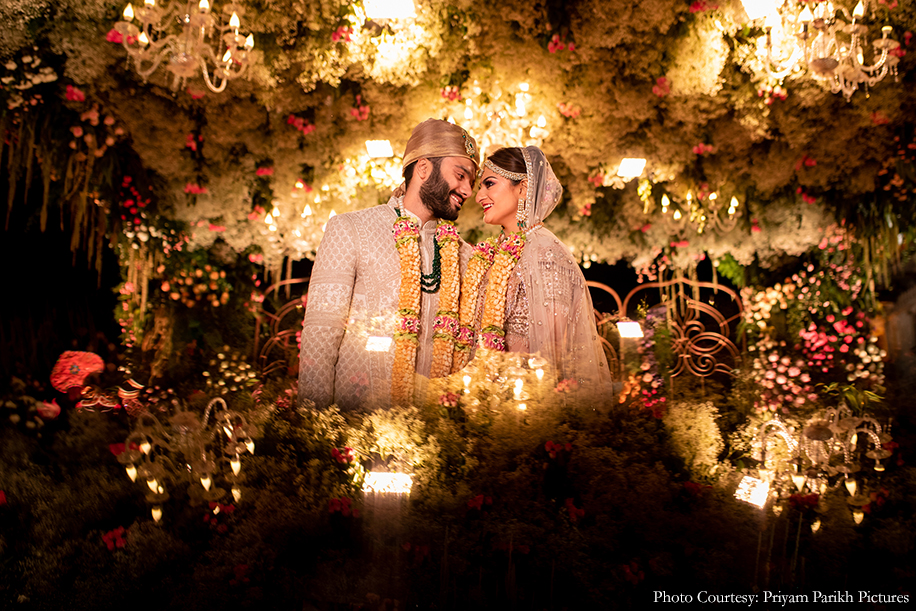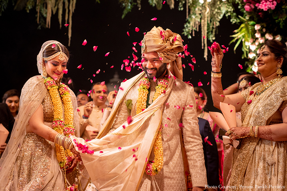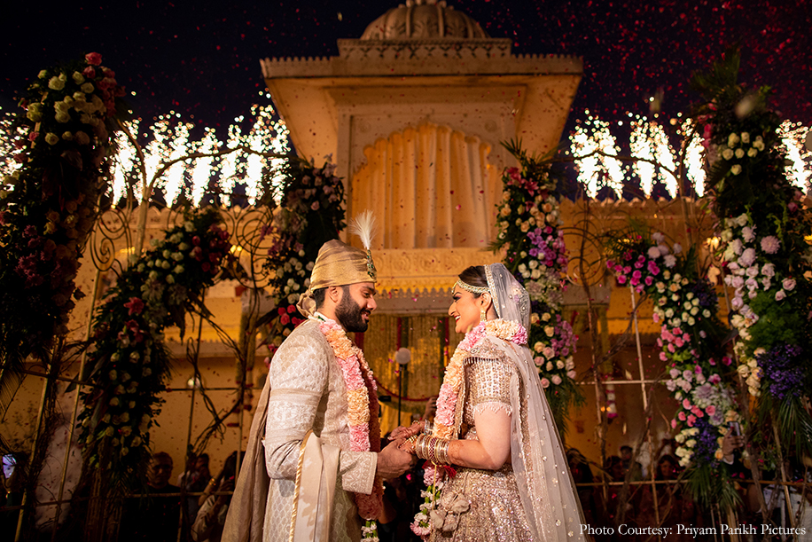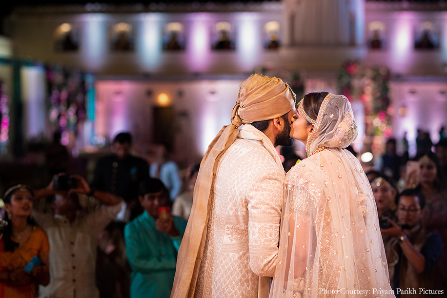 Cupid struck Tanya and Kushal on a New Year’s eve, and little did they know that it would lead them to new beginnings together. The couple wed in Udaipur, and all the lovely moments were captured by WeddingSutra Favorite Priyam Parikh Pictures. With the royal arches of Jagmandir Island Palace, DJ AJ on the console and the rugged Taj Aravali Resort and Spa providing breathtaking backdrops, this wedding was a visual treat for all their guests and loved ones.