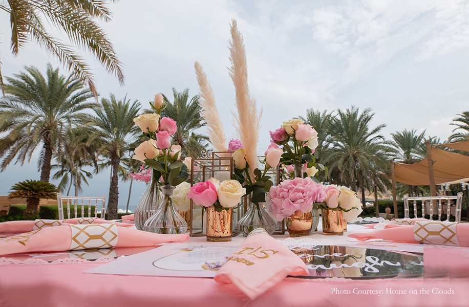 Trisha, the daughter of acclaimed jewellery designer Varuna D Jani and businessman Dipak Jani, tied the knot with Suvraj at the beautiful Shangri-la Barr Al Jissah Resort and Spa in Muscat, Oman. The celebrations were designed and executed by WeddingSutra Favorite – Altair Decor and photographed by the award-winning team and WeddingSutra Favorite – House on the Clouds. Here, bride Trisha shares a few highlights of the festivities.