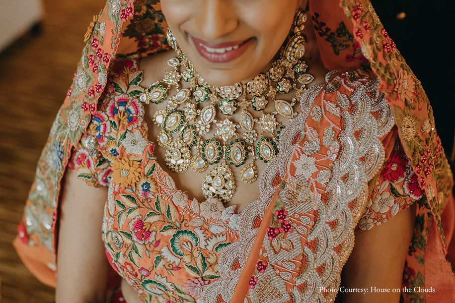The bride made a statement in striking diamond jewellery designed by her mom Varuna D Jani.