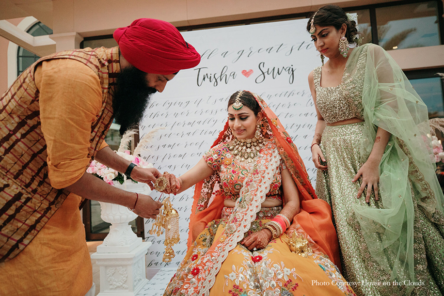 The task of planning the celebrations was entrusted to Trisha’s sister Nidhi Sahi who runs the wedding planning company Enjay Events. They also picked Janki of Altair Decor whose portfolio of spectacular work spoke for itself. Trisha shares, “When it came to photography, we had some very specific requirements. Most importantly, we needed someone who would get amazing clicks of everything without any choreographed posing. After meeting several photographers, we zeroed in on House on the Clouds and were so blown away with their work, that we booked them on the spot.”