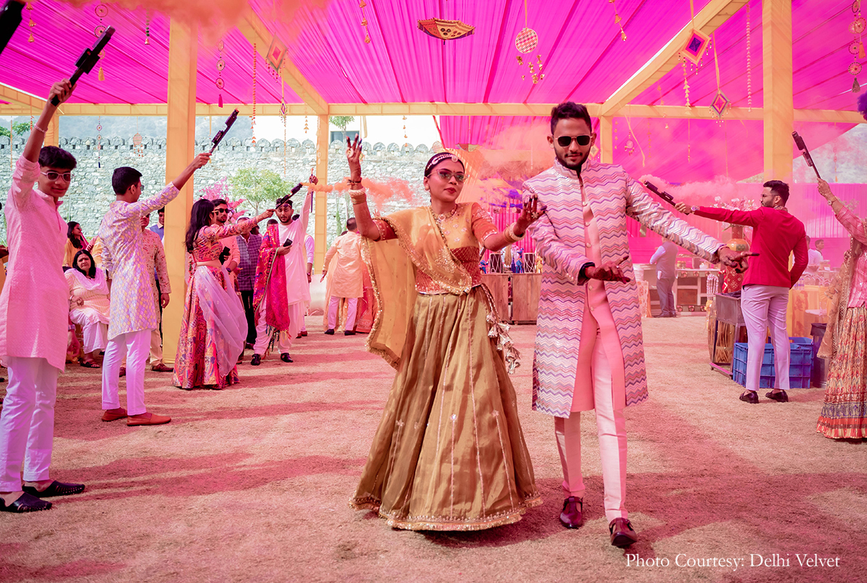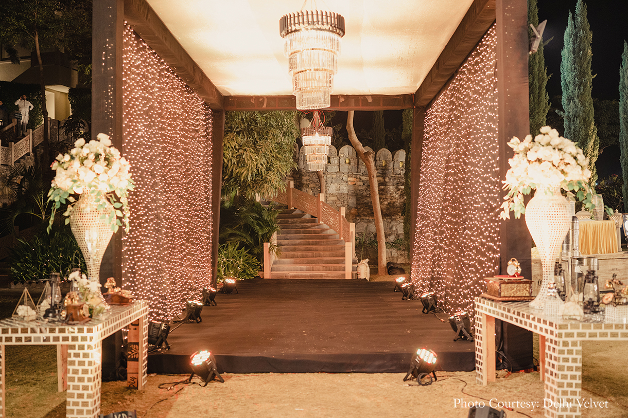 Hailing from Rajasthan, the couple and their families wanted a celebration that captured the essence of their heritage and celebrated tradition while reflecting their modern tastes. Raajsa Resort Kumbhalgarh offered the perfect blend of royal extravagance and contemporary comfort for their dream destination wedding. Built-in the style of a fort with cobbled streets surrounded by magnificent lawns and offering unmatched vistas of the Kumbhalgarh Fort, the resort gave breathtaking backdrops to each of their functions.