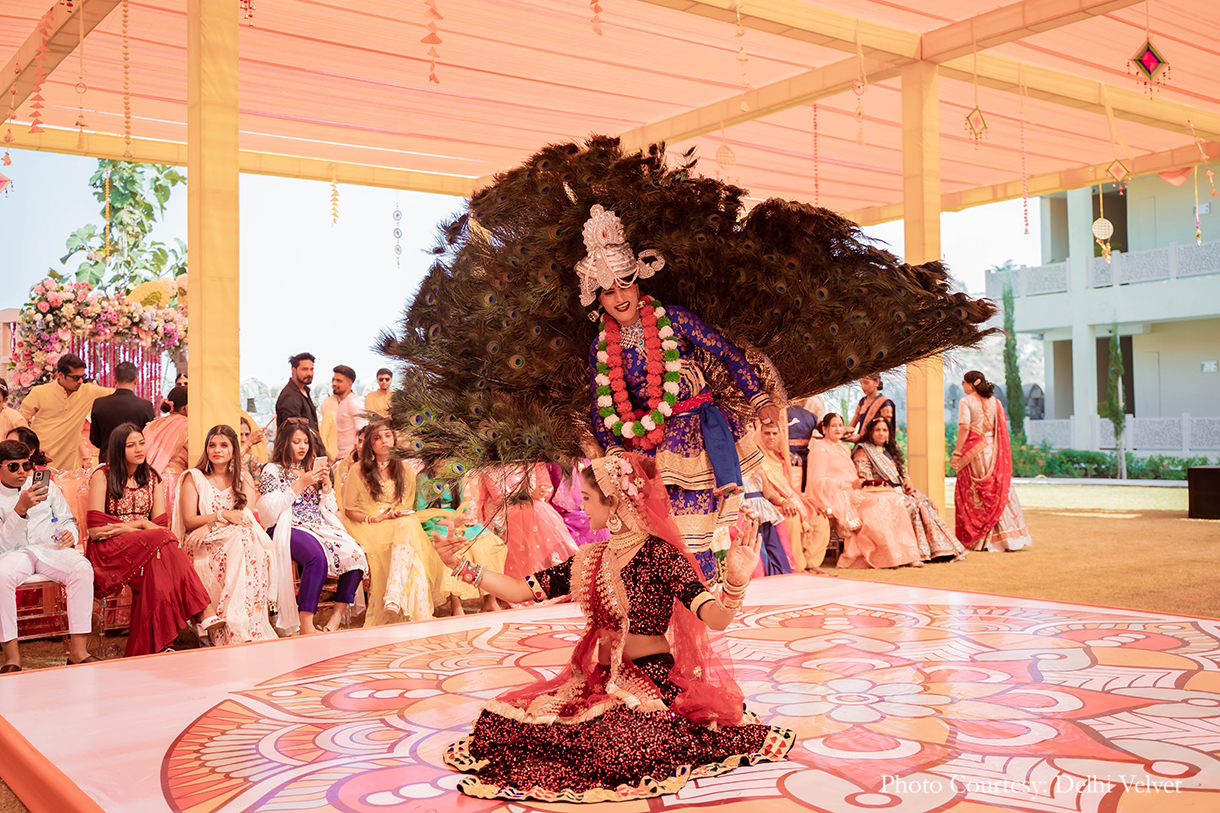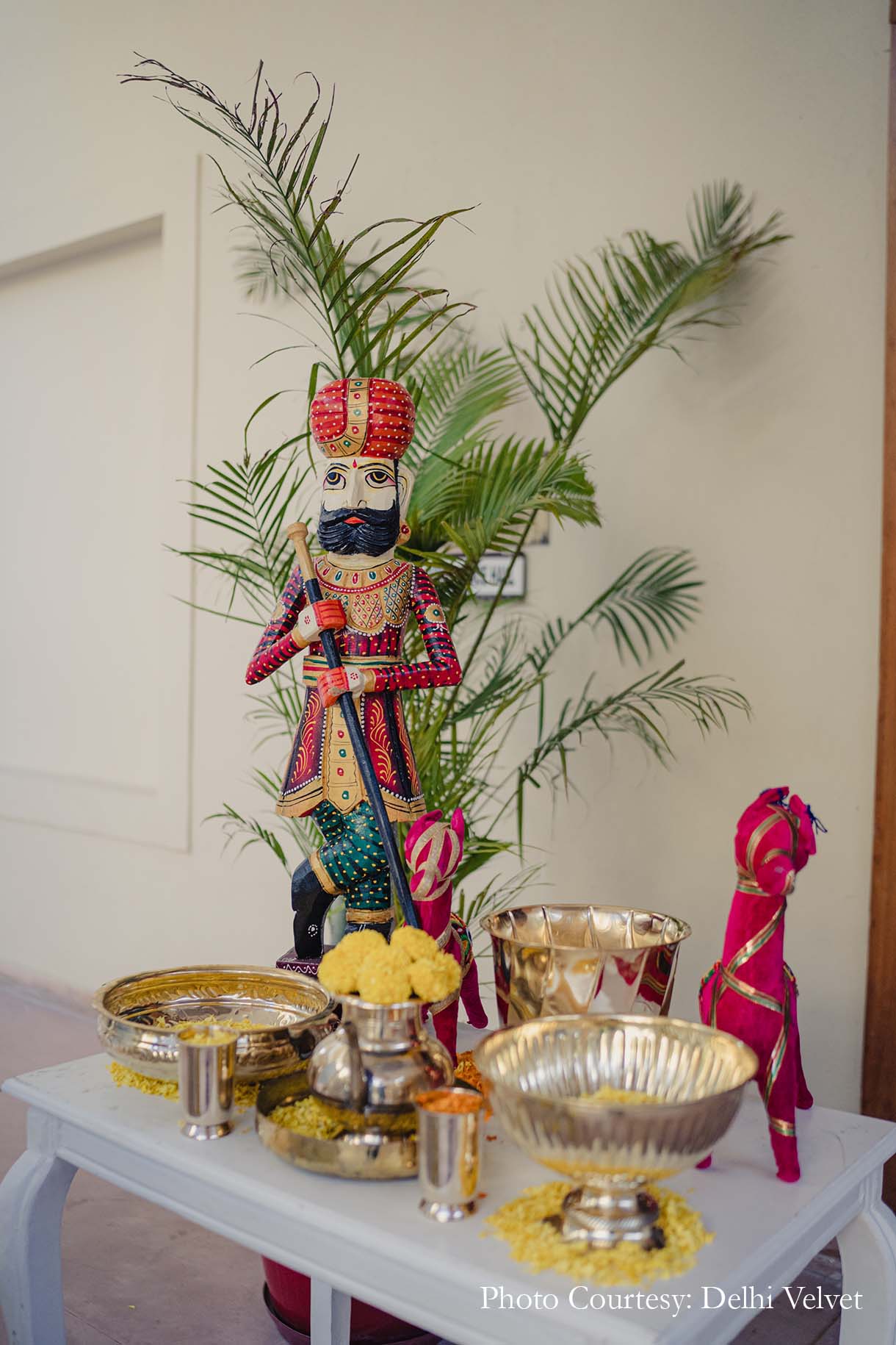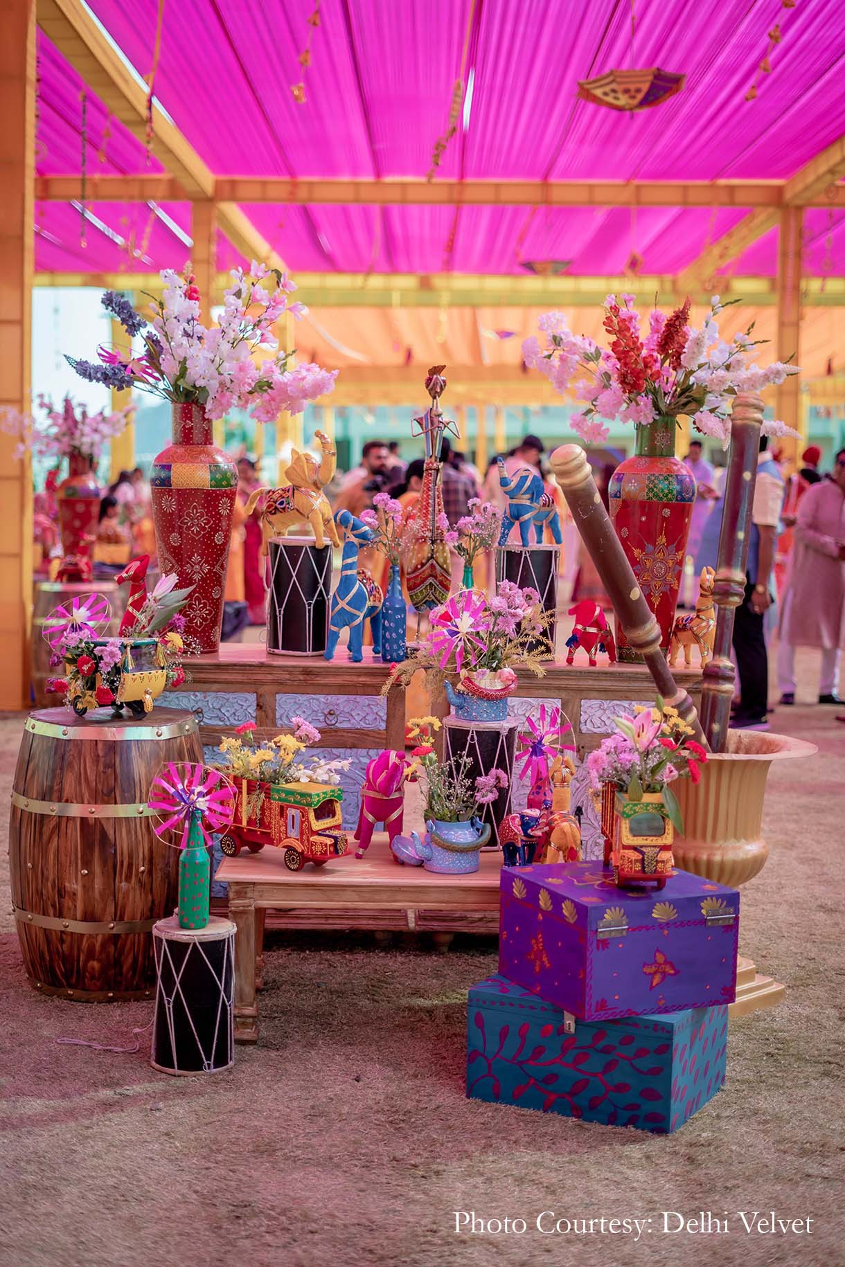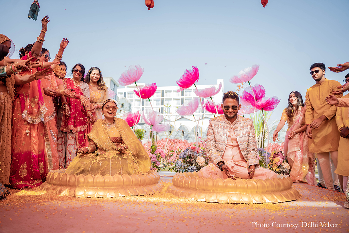 The flavors of Rajasthan came alive in the lively Haldi function! ‘Rang Rangeelo Rajasthan saw a vibrant confluence of quirky local crafts, stunning 3D flowers, colorful drapes, flowers, and a whole lot more, infusing the occasion with inimitable energy and joy. A mix of professional performances, fun games, and happy family moments made the day unforgettable.