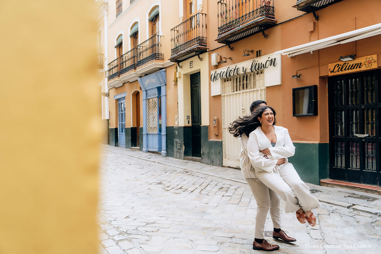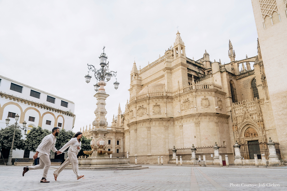 Twisha and Kishan’s love story which has been in the making for almost sixteen years found its ‘happily ever after’ in Seville, Spain. The wedding with its vibrant hues, emotional moments and elegant setups was captured beautifully by WeddingSutra Favorite – Jodi Clickers.