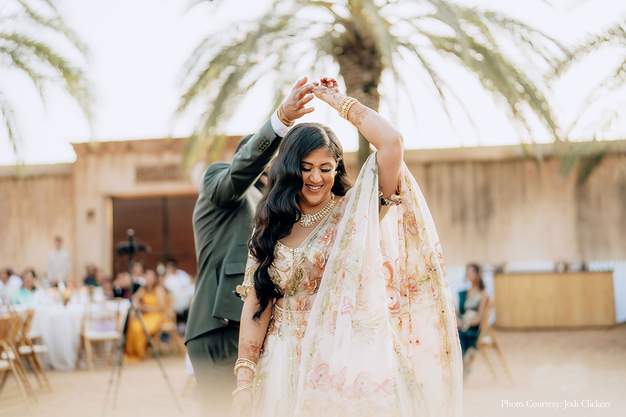 “Our second event was our Mehendi night which doubled as our welcome party- held at a venue right above the Guadalquivir River making a picturesque backdrop. We wanted our Mehendi night to be a fun and casual night with games hosted by our niece and the event ended with the best party tunes by our DJ Jas. Overall, the vibe was vibrant and scenic”, the couple recollects.