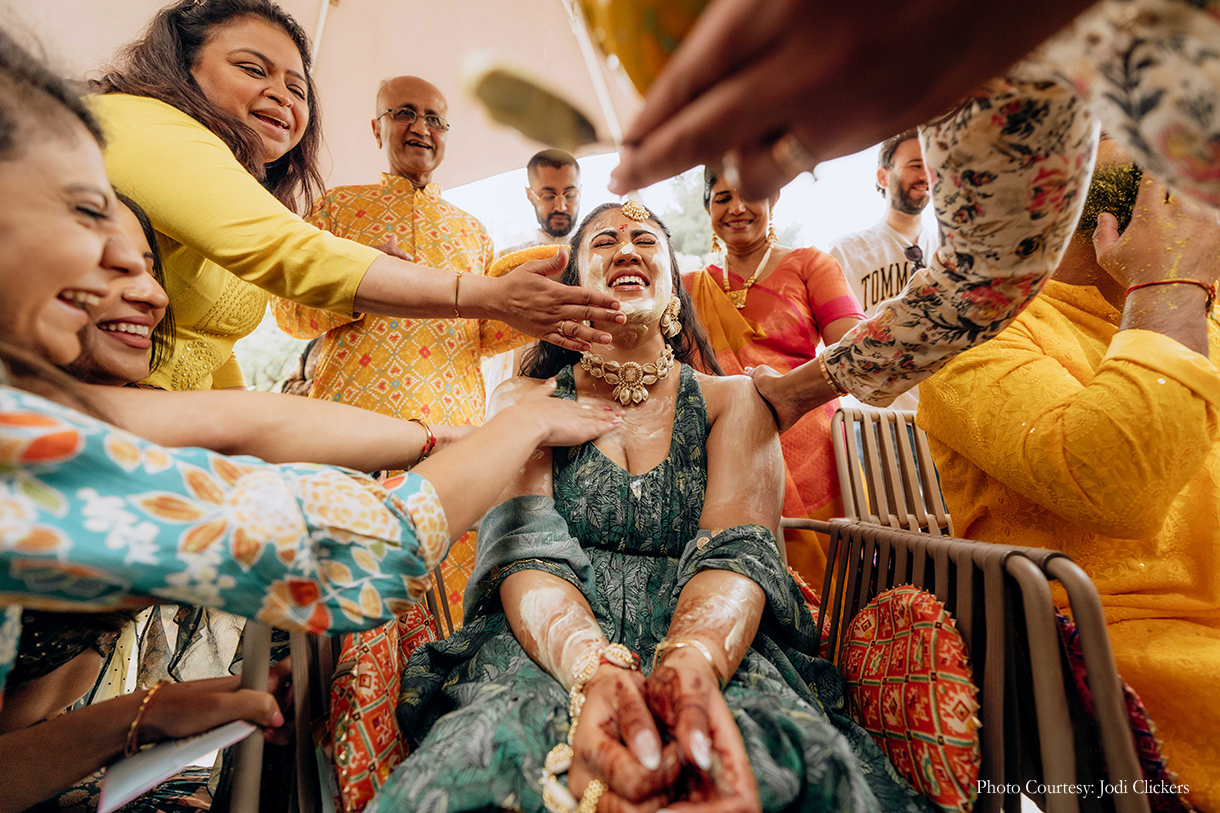 Impressed by their photography team’s skills and patience, the happy bride shares, “Jodi Clickers went way beyond our expectations, Kishan and I felt like we were meeting old friends. We had such a great time through the week even though we were so tired. Neither of us has ever been comfortable in front of the camera but Jodi Clickers honestly kept us laughing every minute and they were just so patient. And let us not forget how incredible these photos look. They captured the essence of us – 16 years of friendship and 10 years of love, all wrapped up in the perfect picture’. We’ll be cherishing these for years to come!”