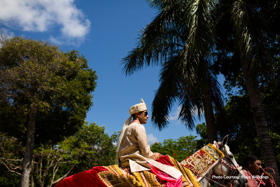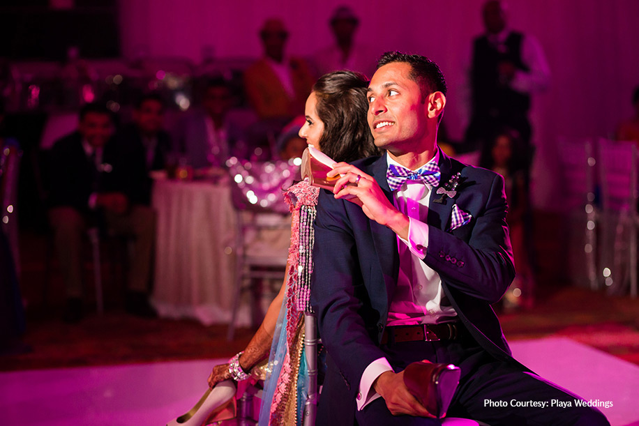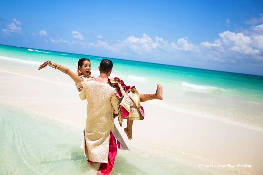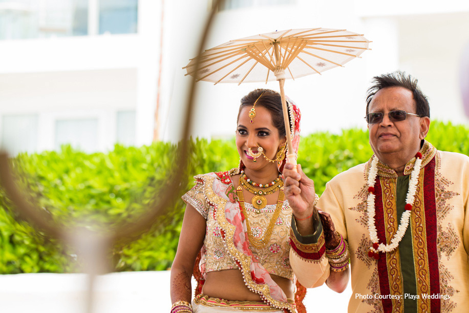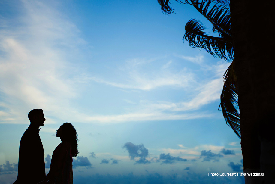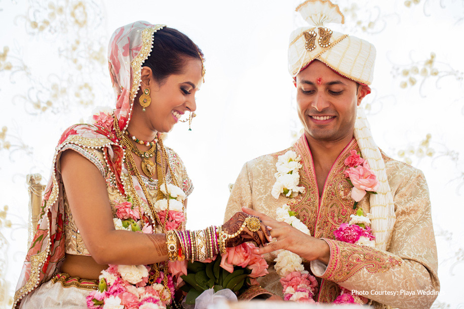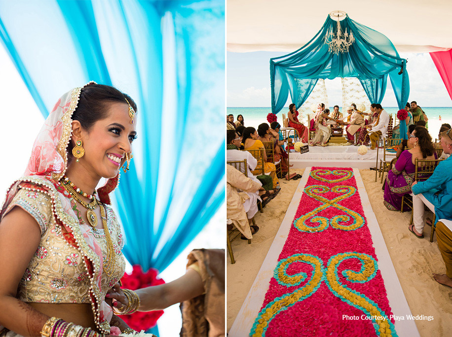 Tejas and Twisha pulled off a traditional Gujarati wedding in the beautiful environs of the Playacar Palace in Mexico. Bride Twisha shares how the gorgeous setting included pretty Gujarati accents and traditional themes.