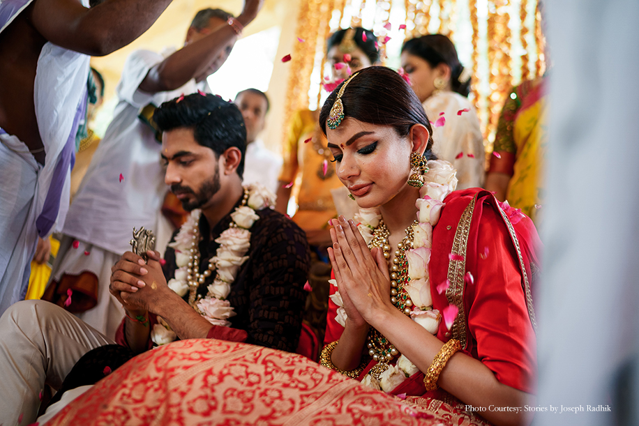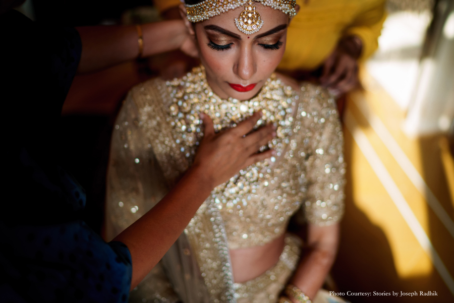 Devika Narain of Devika Narain & Company handled the decor for the wedding. With her artistic vision and expertise, she transformed the stunning venue spaces into wonderlands I had always wished for. I had two make-up artists, Sandhya Shekar for all the functions, except for the reception at Chennai for which Mitali Vakil did my makeover. Our photography was handled by a close friend, Joseph Radhik of Stories by Joseph Radhik, and we had The Wedding Filmer handling videography. Lastly, The Wedding Bartenders did a remarkable job with drinks as well!”