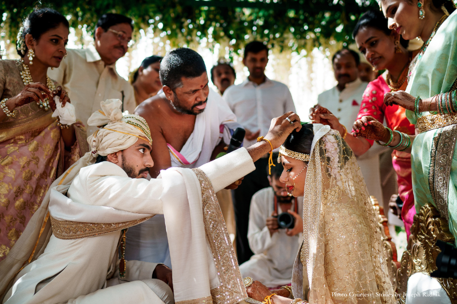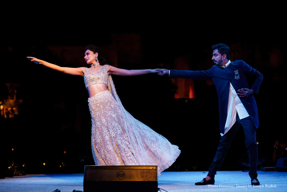 “Wedding planning felt so much easier with the Shaadi Squad by our side. Keeping in mind our personalities and preferences, they meticulously planned each function. While Jaisalmer proved to be a stunning venue for the wedding, a lot of planning and logistics needed to be taken care of due to the sheer location. A 30-member hospitality team was flown in from Mumbai to run the show. They had an array of entertainment in place as well; a Karnatic band from Chennai, traditional Nadaswaram, Nashik Dhol from Pune, a percussionist from Mumbai, a Hyderabad based DJ and a saxophonist from Paris!
