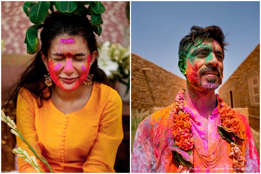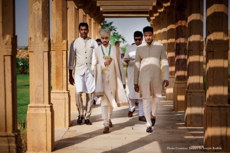 The sprawling ramparts of the historic Suryagarh Jaisalmer heritage hotel got a dash of color as Rohit and Varshini’s three-day wedding celebrations, orchestrated by Shaadi Squad, got underway with interesting themes, standout decor, Rajasthani performers and a mandap setup in an ancient stonewell on the property. Here, bride Varshini shares some beautiful memories and highlights of the festivities.