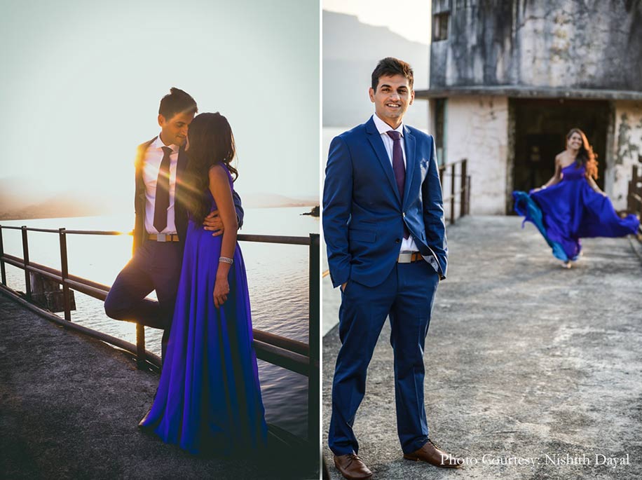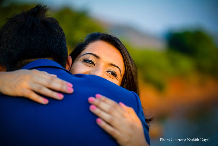 “Vishal proposed after our 29th birthday dinner in San Francisco. He usually is on point while choosing gifts for me, but this time, he presented me with a box while on one knee. When he opened the box, I saw that he had bought a multi-colored, flower-shaped ring for me, instead of the elegant diamond one I was hoping for. As excited as I was about the proposal, I just couldn’t hold back my horrified expression when I first saw it. I tried really hard! But, he was a good sport about it and returned it.”